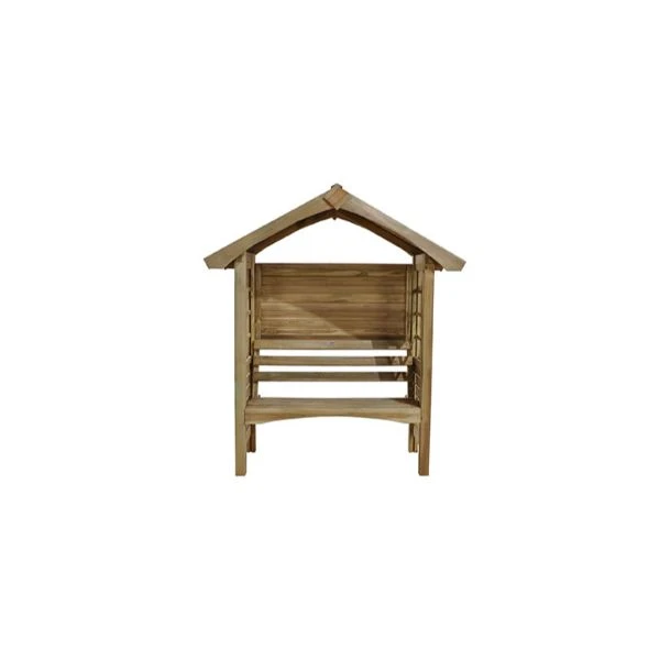 The arbour has a solid timber roof and back panel to keep you protected from any unexpected rain showers. The timber used has been Pressure Treated by the manufacturer to give it a 15 year guarantee against rot and fungal decay.