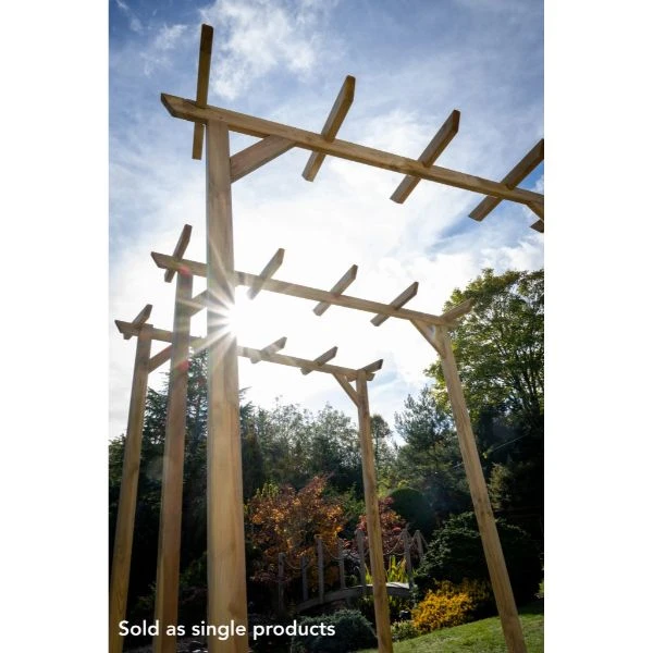 The classic pergola top combined with simple, strong lines makes this wooden garden arch a powerful feature for your garden. Use the wooden arch to frame your garden path, entrance way or seating area.