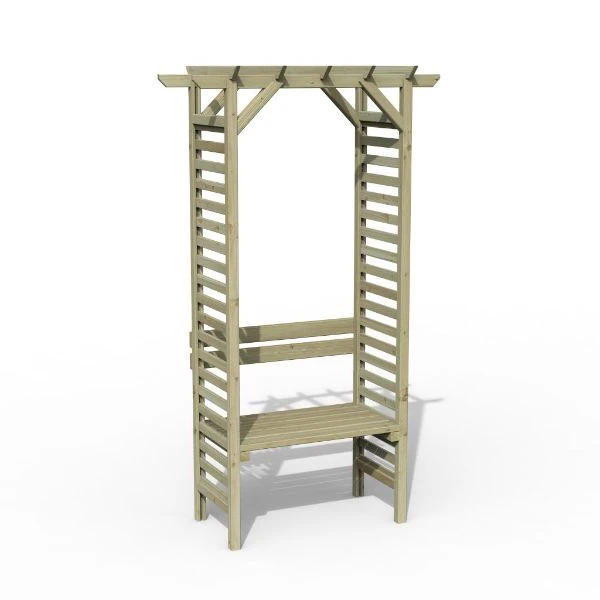 The popular slatted design and strong clean lines of this wooden arbour make this a striking garden seat. The pergola style top and slatted trellis sides are ideal for training your climbing plants. The single seat is the perfect place in which to relax and enjoy your garden.