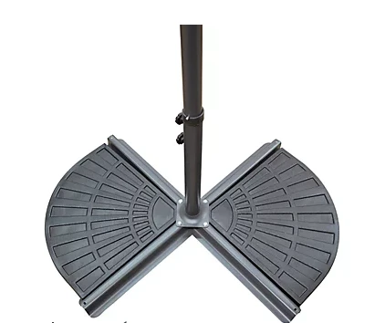 GardenKraft 14kg parasol base set of two provides stability for umbrellas and parasols. With a combined weight of 28kg, the X-shaped legs of banana and cantilever style parasols are easily held down, creating a symmetric, attractive design. Durable construction with cement filling and plastic casing ensures these bases will stay in place, even through adverse weather. Enjoy secure parasol usage for years to come.