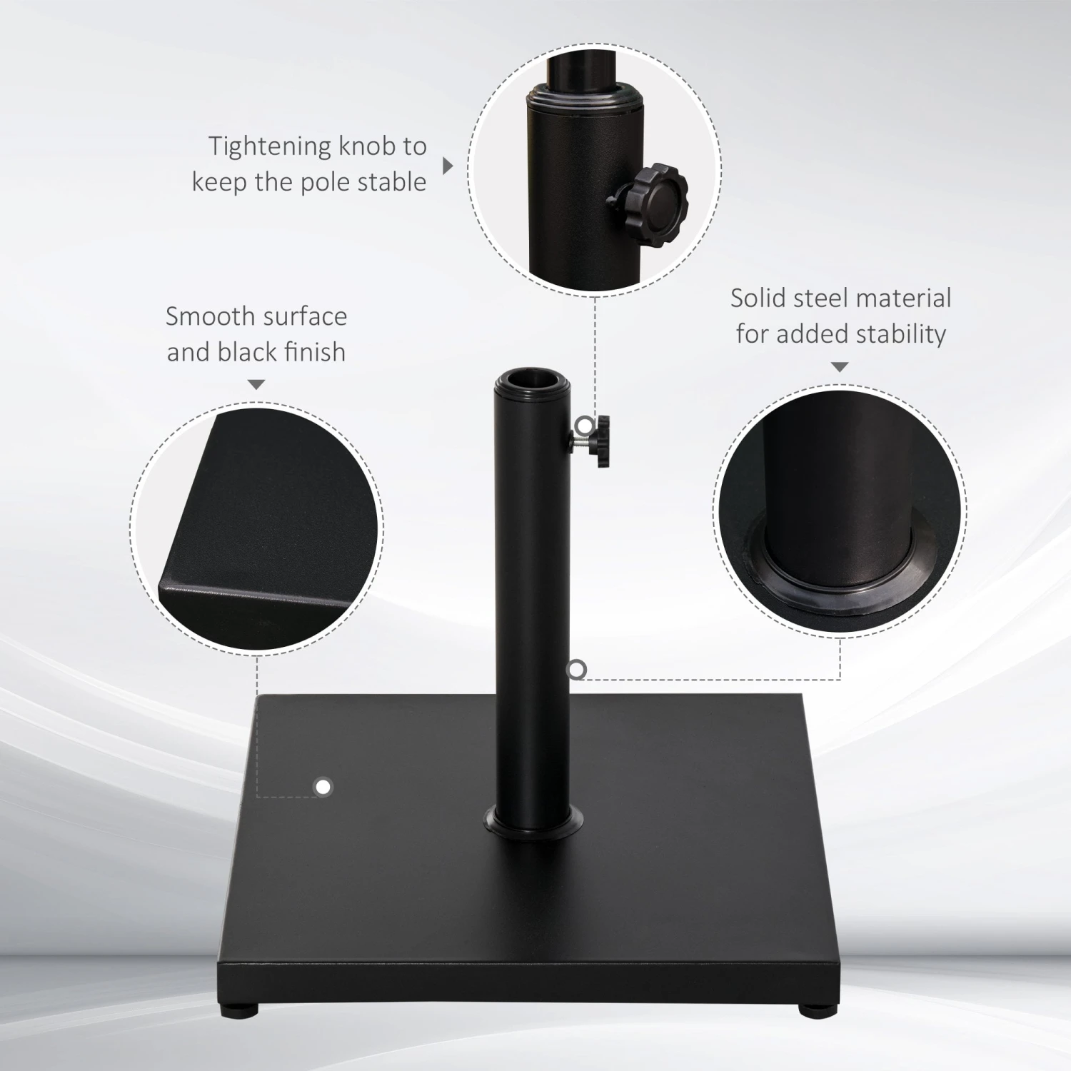 Keep your parasol firmly in place all day long with this base from Outsunny. A simple square design in a matte black finish, this understatedly sleek piece blends in with your garden furniture effortlessly, with its heavy-duty steel construction ensuring it is a mainstay outdoors for seasons to come. With a powder coating all over for extra strength, the central pole holder fits umbrella poles with 3cm, 3.5cm and 3.8cm diameters, with the turning knob locking the pole in place so it doesn’t sway to the side. Its finished with four non-slip foots pads for extra resistance and protection to your floor. A must for anyone with a garden umbrella this Summer and beyond.