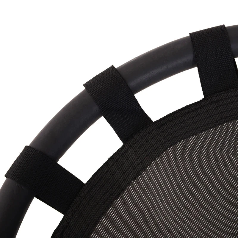 - Sturdy metal frame with a breathable mesh cover and sturdy nylon rope