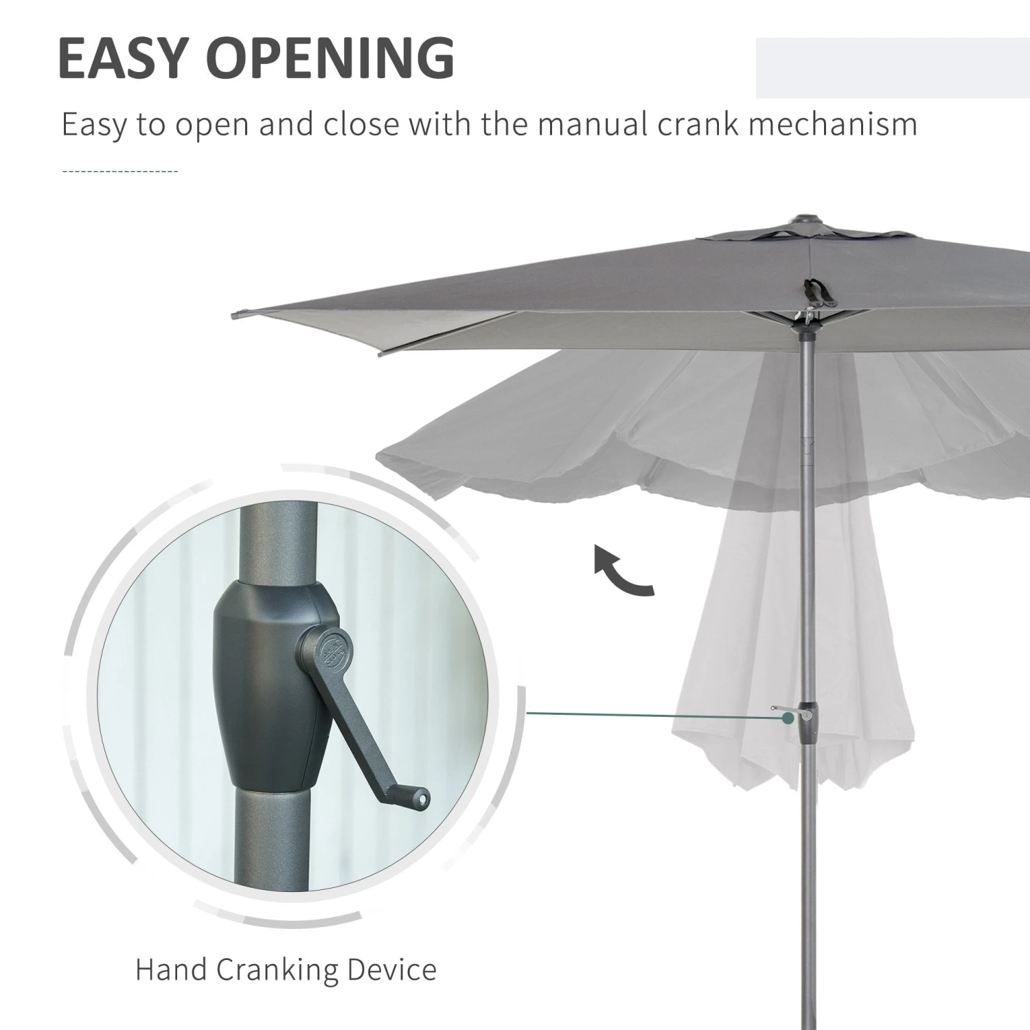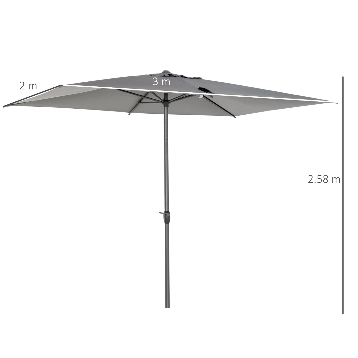 Protect yourself outdoors in ultimate style with this sun umbrella from Outsunny. Our stylish and simple sun umbrella, which can be a perfect addition for any outdoor area. Made from 180g/+ú+¢-í polyester to provide protection, you can adjust the angle to set to a position which is best for you, with six metal ribs for extra support between the frame and canopy. A crank mechanism design for easy opening and closing. The perfect blend of beauty and function.