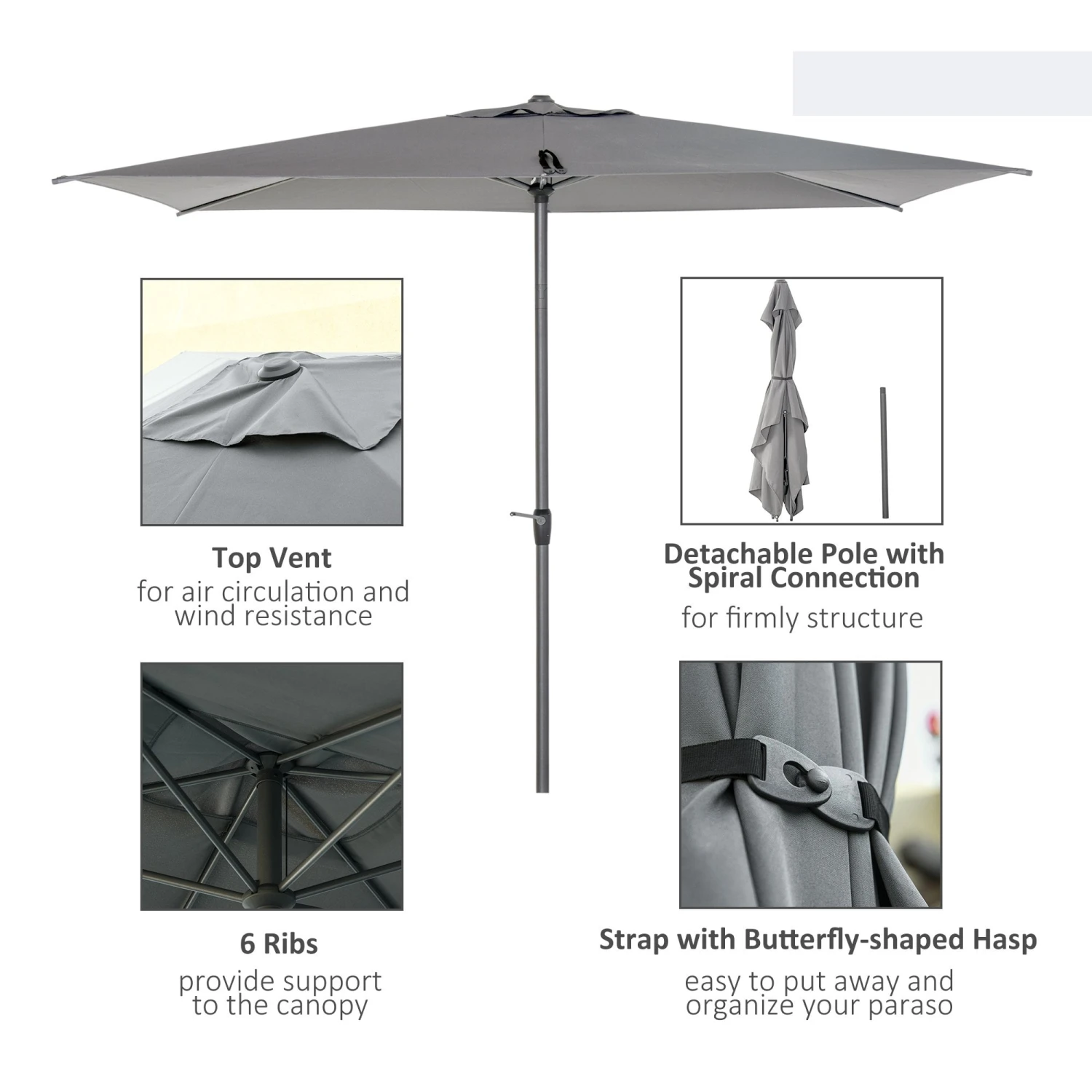 - SIX RIBS: Connects the canopy to the pole for extra strength. DIMENSIONS: 2.58H x 3L x 2Wcm.