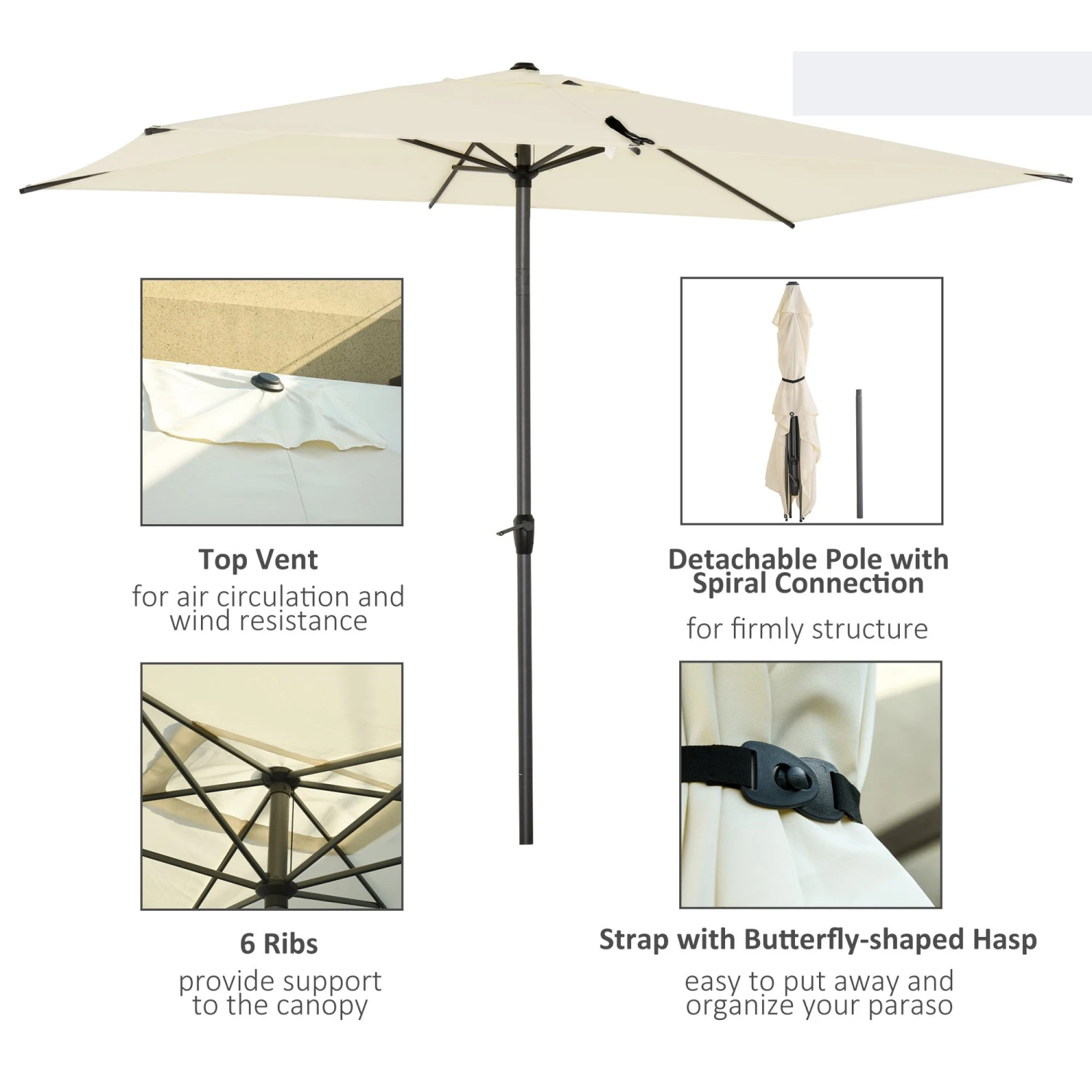 Oasis 3 X 2 M Ajustable Title Crank Garden Parasol – Beige