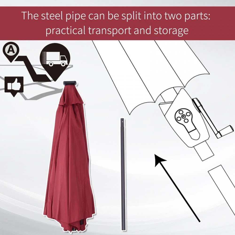 This Outsunny patio umbrella is a perfect choice to give shade on those sunny days, it has the ability to tilt for better protection. The umbrella is made using a metal frame and the umbrella shade is made of polyester fabric. Featuring a classic tranquil colour and sleek lines, It is design to maximize the shade capability. It is suitable for your patio, garden, and can be used with existing garden furniture. The metal structure and 180g/polyester fabric gives optimum support and long lasting features. Too make it even better, they come complete with Solar powered Led lights with adjustable 4 colours. So when it gets dark you can still continue enjoying the outdoors.