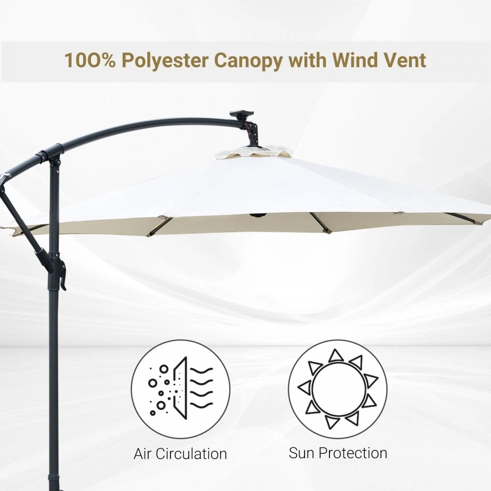 - 8 SOLAR POWERED LED STRIPS: This outdoor patio umbrella comes equipped with a solar panel and 8 pre-installed cool white LED strips one of which has a switch that provide stylish energy-efficient lighting.