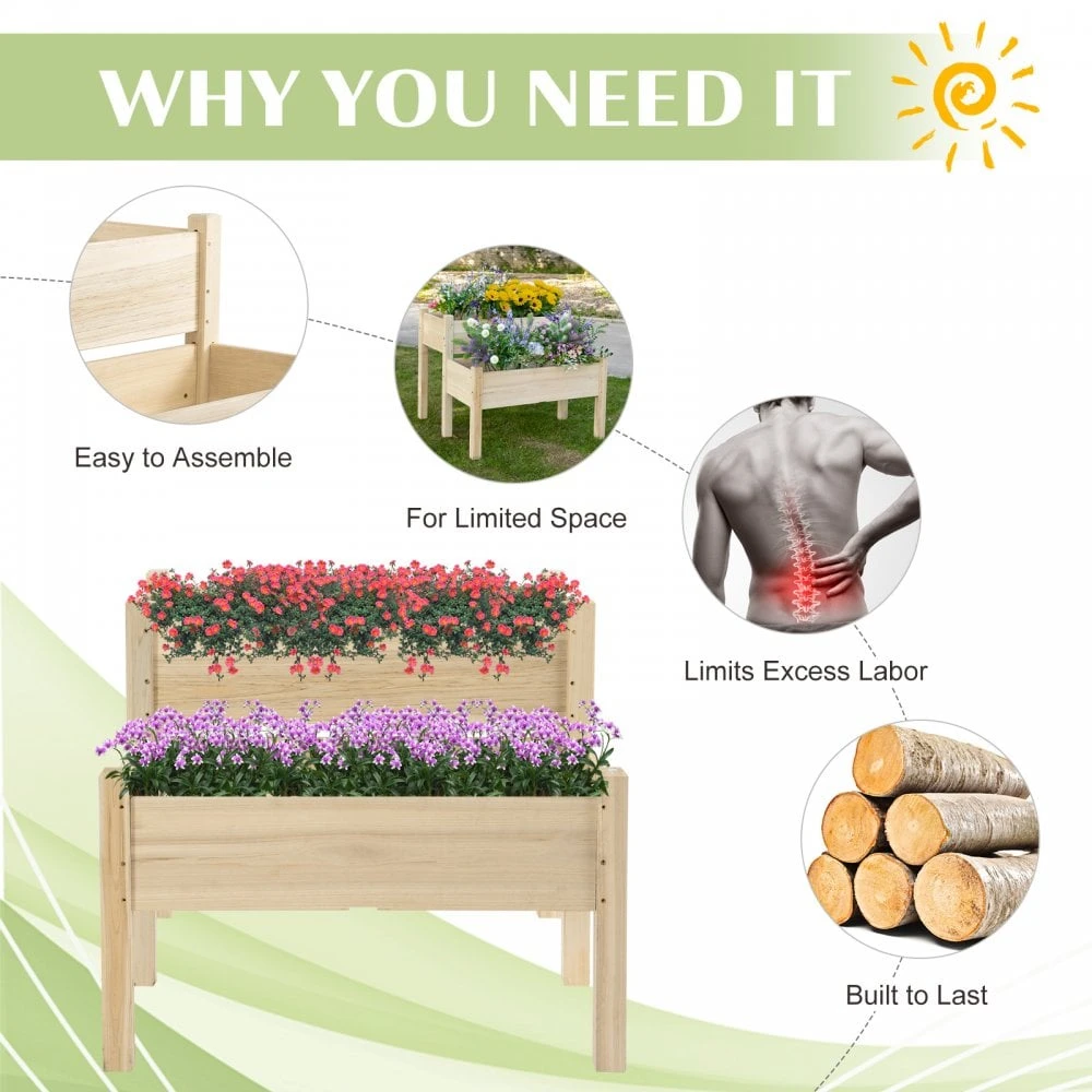 Let natural beauty lead the way in your garden this season with this planter bed from Outsunny. A two-tier design which ensures flowers, vegetables and herbs have plenty of room to grow and flourish, its elevated levels mean you won’t have to bend down or straining your body, with its fir wood frame ensuring a solid and sturdy core to cope with standing outside. Drainage holes on the bottom allow extra water to leave, with thick legs to ensure stability on the ground. Perfect for growing indoors and outdoors.