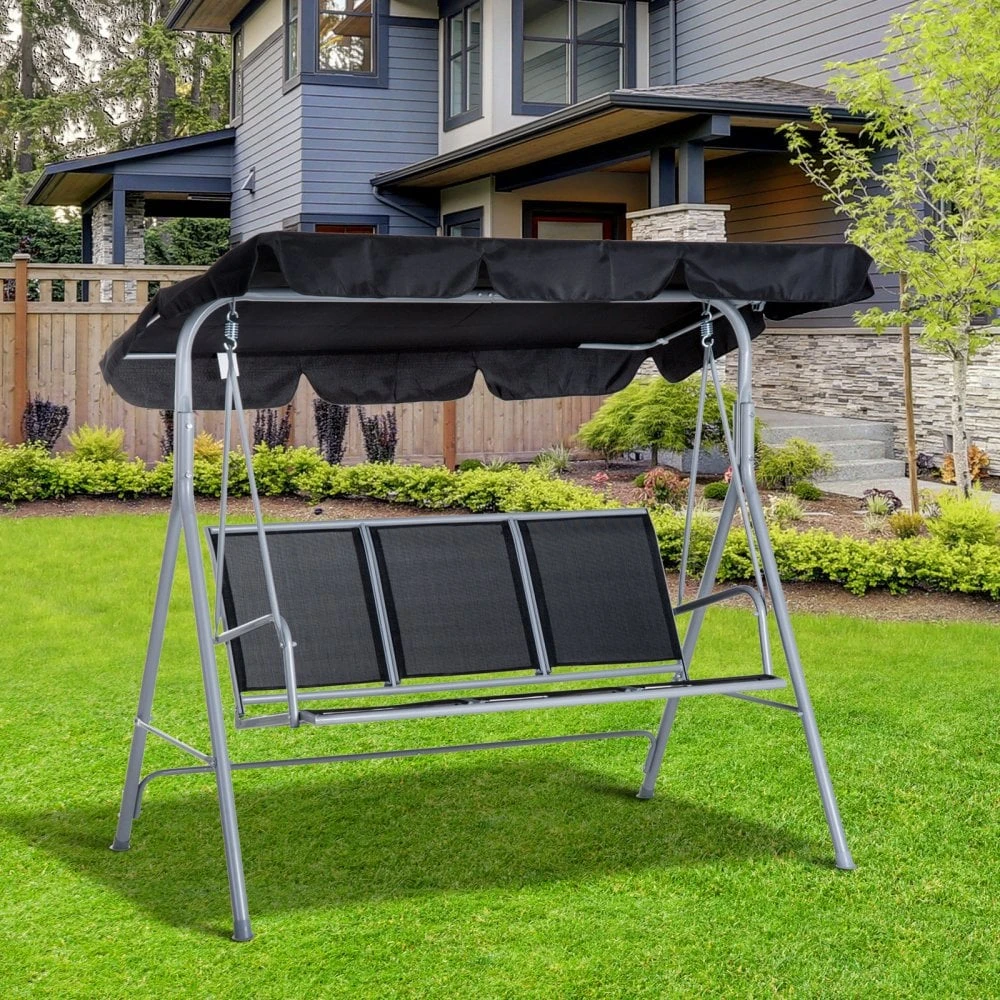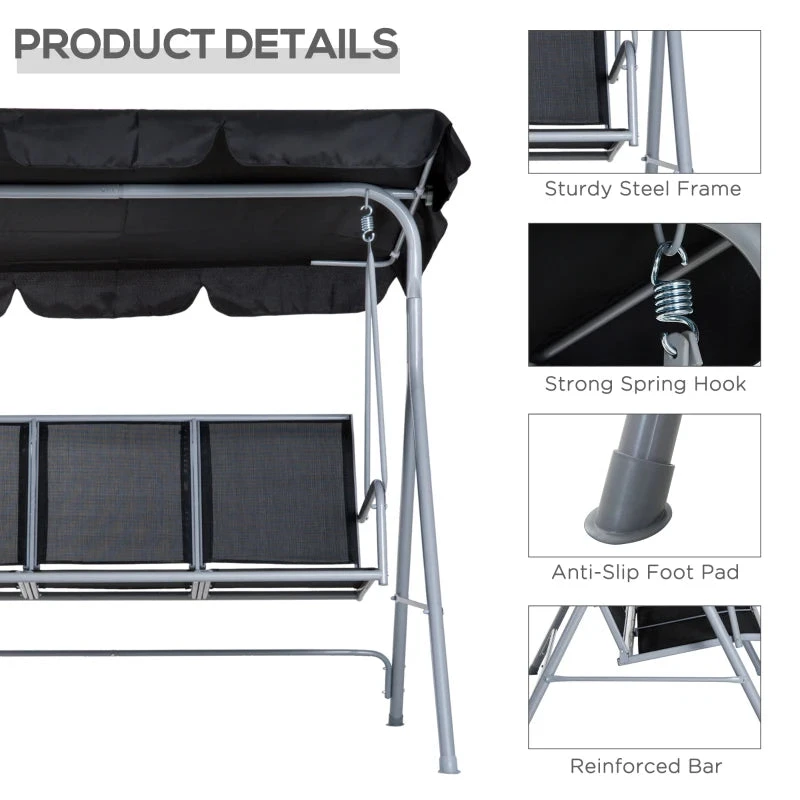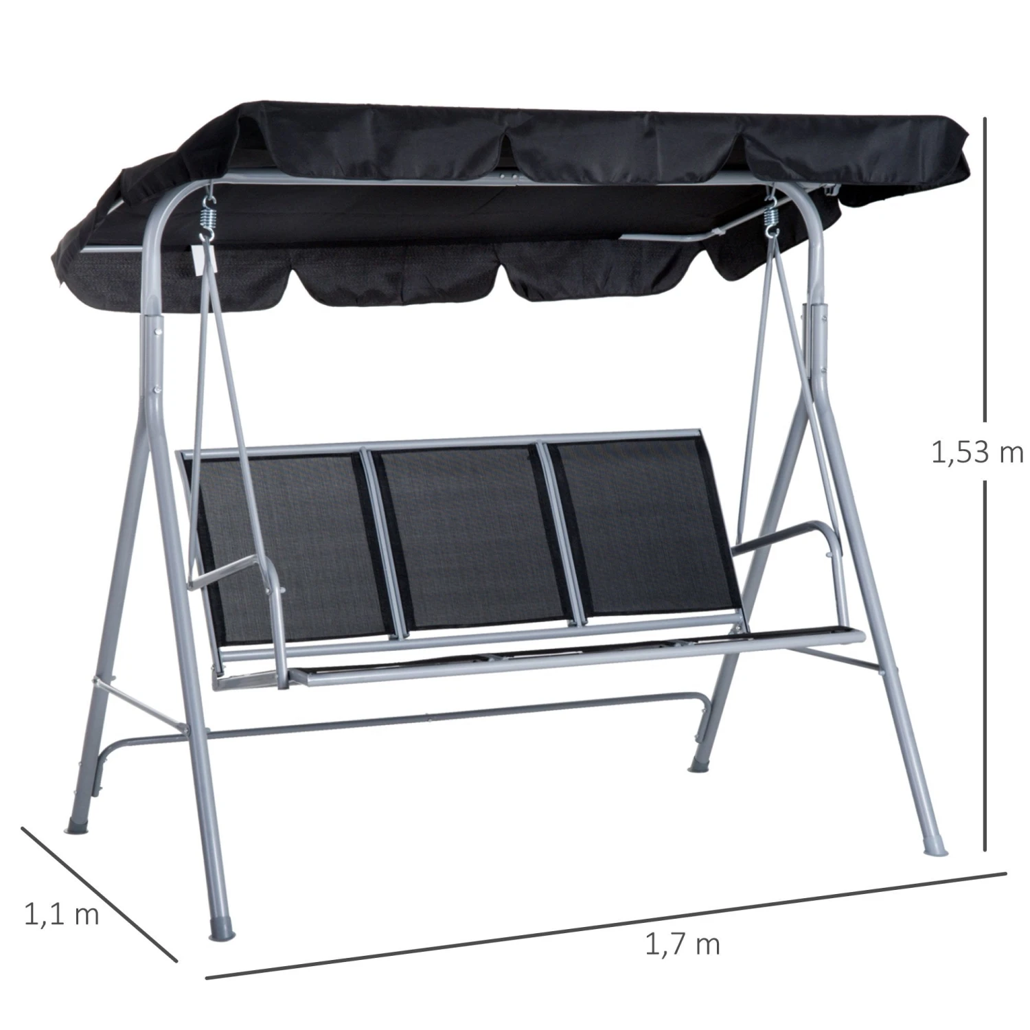 This Outsunny 3 seater swing chair is an ideal addition to any garden, patio or outdoor living space. Made from metal with sling fabric seating, metal garden swing bench also has a UV protected polyester canopy to keep you shaded from rain and sunlight. This swinging garden chair is stylish, practical and would match any outdoor décor.
