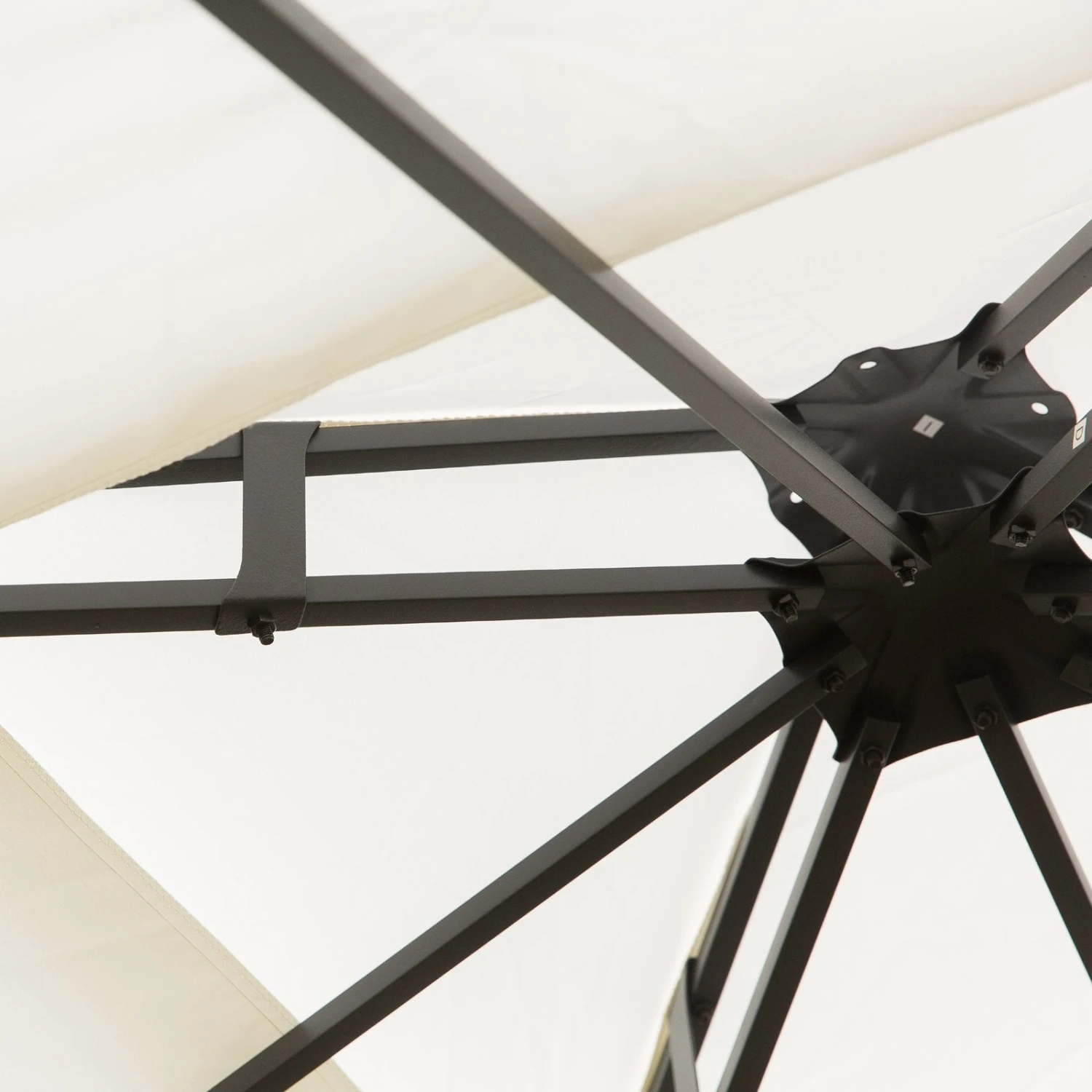 Add an elegant touch to any outdoor space with this 3x3m garden pavilion, from Outsunny. The powder coated steel frame is strong, it stands even steadier when the eight stakes are pinned with it. The cut-out leaf and line design brings an elegant feel – great for stepping up your garden/outdoor party looks. The coated fabric canopy creates shelf shelter underneath, with a top tier to allow potential built-up air and heat to escape easily.