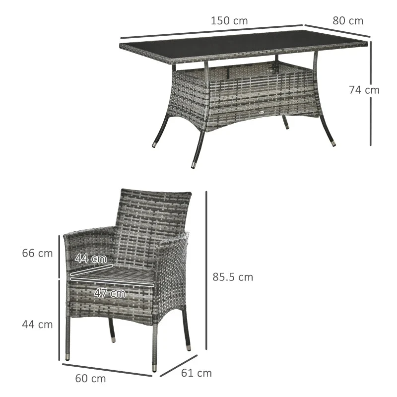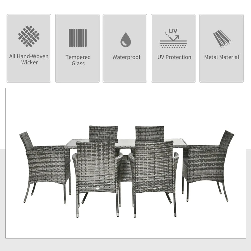 This seven-piece rattan dining set, from Outsunny, is a stylish and deluxe way to enjoy the outdoors. Each piece comes with a galvanised steel frame for a tough structure, wrapped in beautiful PE wicker – a fashionable and durable garden statement. The table is fitted with a safe 5mm tempered glass table top for a sleek statement. Each chair has a seat cushion for comfort. And to clean? Simply grab a damp cloth and wipe – it’s as easy at that.