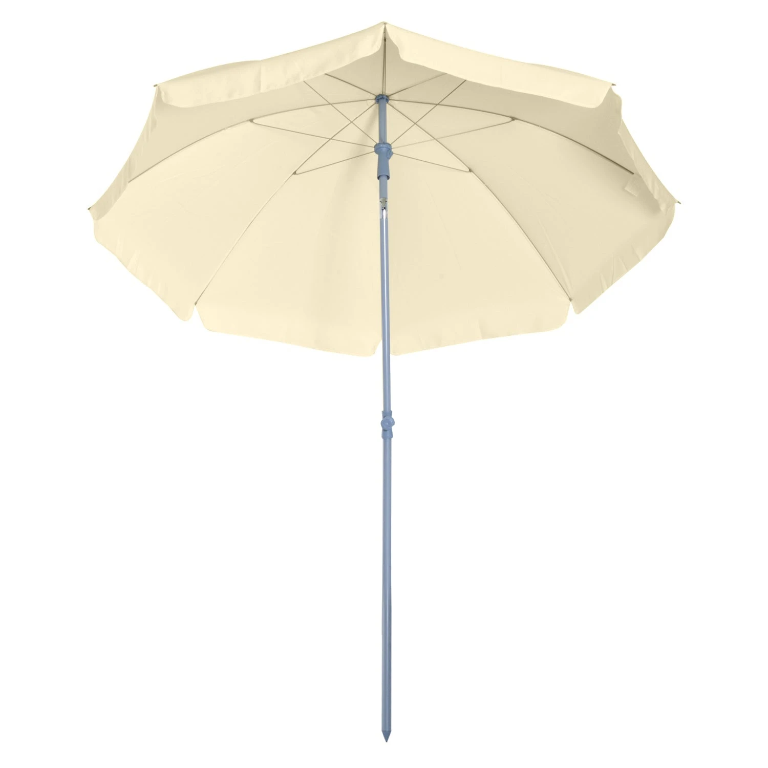 Features:• Steel pole with 8 ribs provide stronger support and durability;• Fade resistant polyester fabric protects against harmful UV rays;• Tilt mechanism allows the umbrella be easily adjusted for more angles for shading;• Hand push operation makes it easy to open and close the umbrella;• 2.2 M diameter canopy provides large shading area, ideal for garden, backyard, pool side and deck;• Lightweight aluminium poles unscrew at middle for easy and compact storage;• Assembly Required. Base is not included.;