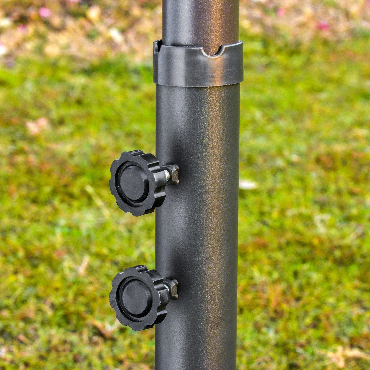 - STEEL POLE: Strong, sturdy and built to last. DIMENSIONS: ?2.7 x 4.6W x 2.4H M.d ASSEMBLY REQUIRED. NOTE: STAND NOT INCLUDED. But you can find the applicable umbrella stand in the shop: B08BWPHKN7