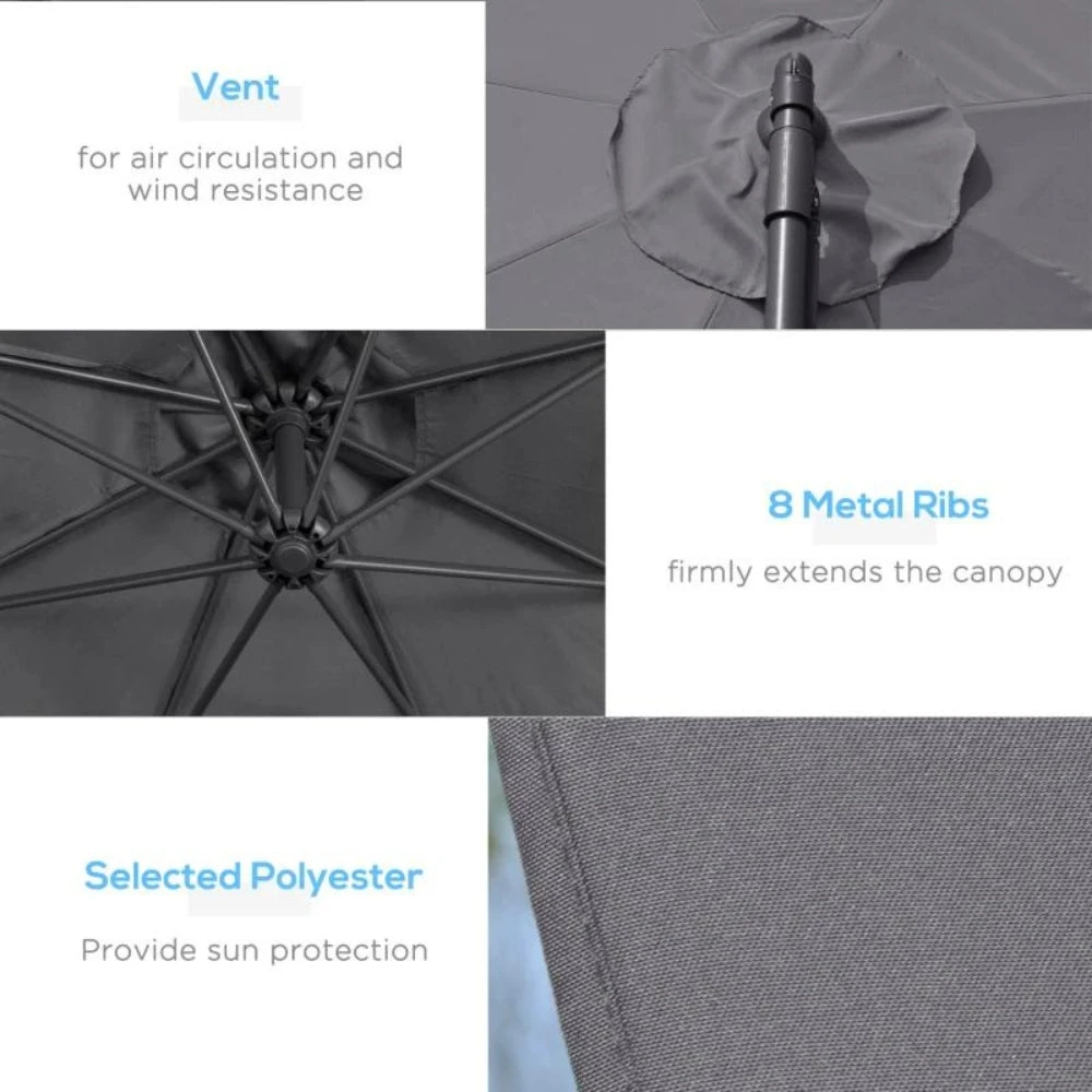 Outsunny Garden Banana Parasol With Cantilever Umbrella 3m – Grey