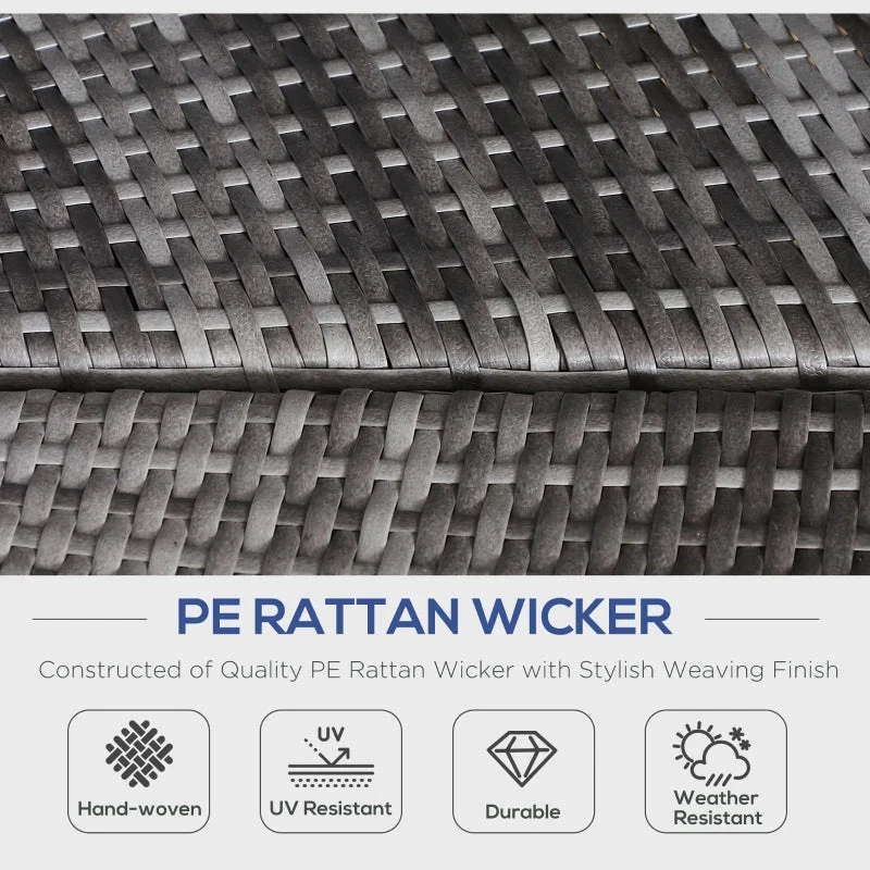 A hybrid of rattan loungers from Outsunny. The set include of two quarter round chairs, two quarter round chairs and a round table. Using metal as the base frame for a strong and sturdy structure, each piece is wrapped with PE rattan to provide a shield against light weather. Thick cushions on each seat of the rattan sun lounger are removable and washable covers, with a large overhead canopy completing this set to offer you protection from sun glare and wind. An innovative design to get out.