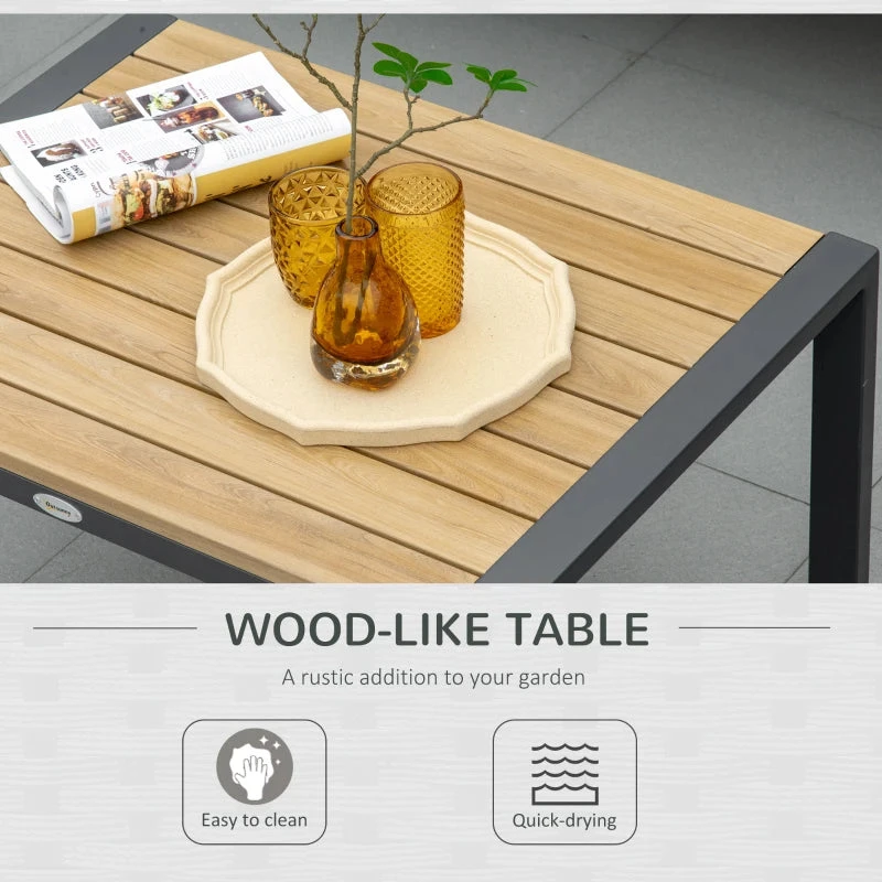 Keep your garden dining simple – with comfort at the forefront with our aluminium garden furniture sets from Outsunny. The patio set comes with two armchairs, a loveseat and small table. Each frame is made from powder coated aluminium for strength, with seat and back cushions on all seats for you to sit comfortably. The high back and armrests of the seats support your body. Metal garden furniture set is also completed with wood-effect slats on the table and armrests for a touch of natural beauty.