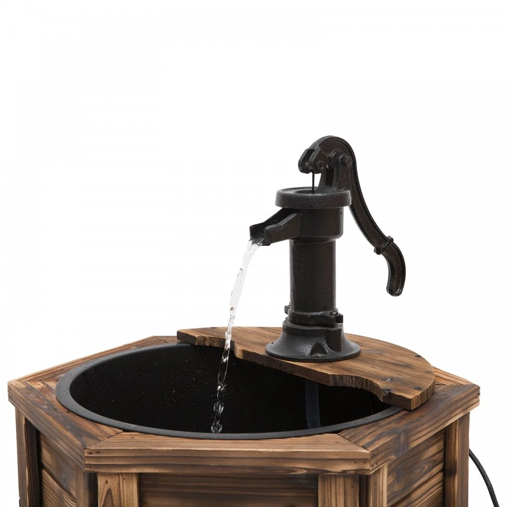 Create your own peaceful oasis in your garden with this charming water fountain from Outsunny. Perfectly hexagon shaped, the frame is crafted from solid wood to a tough and durable structure, with a protective coating to protect against outdoor weathering. A deep plastic well is placed in the base, keeping the water collected and clean, whilst working in sync with the electric pump for even flow which can be controlled. The pump can also be used manually for a realistic effect which children will adore interacting with.