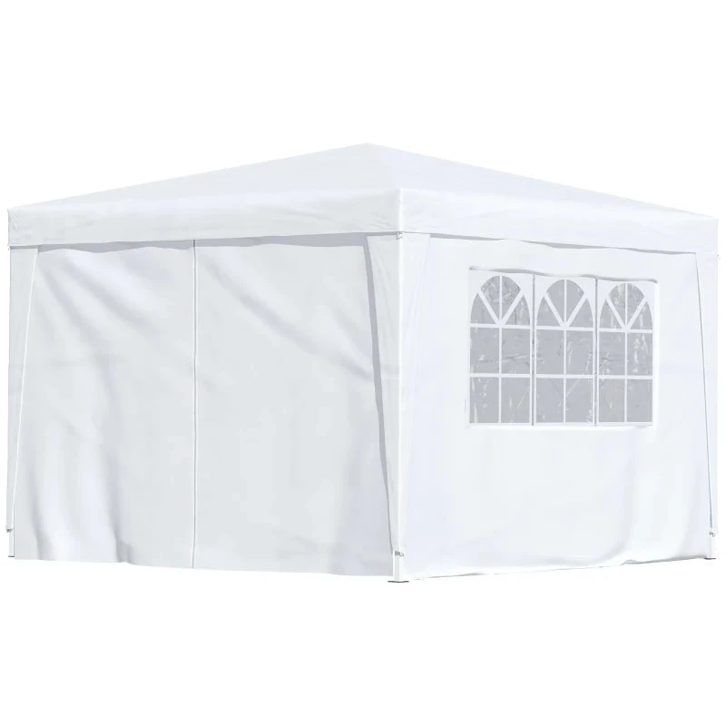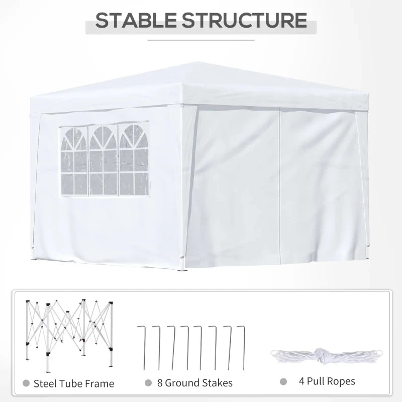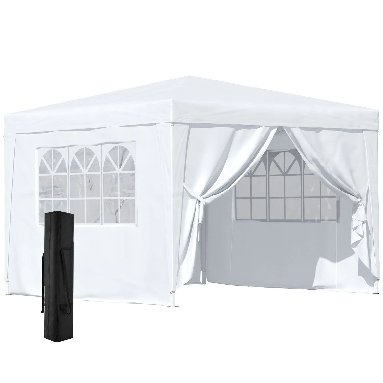 This 2.95 m x 2.95 m gazebo with sides is a great, no-fuss outdoor shelter. It is Ideal for family parties, weddings, picnics, sports events, outdoor vendors, craft fairs, job sites and camping trips. This pop up gazebo provides easy set-up and take down in less than one minute. It also comes with a portable carrying case. This garden shelter has a high-quality powder-coated steel frame which has high strength and is suited for winter, with PVC coated sidewalls for mild weather resistance.