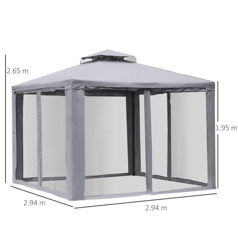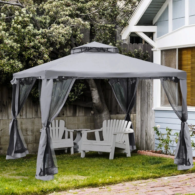 The stylish garden pavilion by Outsunny will turn your yard into a sophisticated and functional focal point with the stylish appearance and considerate design. The canopy top provides protection, blocking harmful UV rays while allowing sunlight to shine through. Enclosed netting provide full protection to your outdoor livings. The solid metal construction and weather resistant polyester fabric of this metal gazebo will ensure to enjoy this cozy space for years to come.