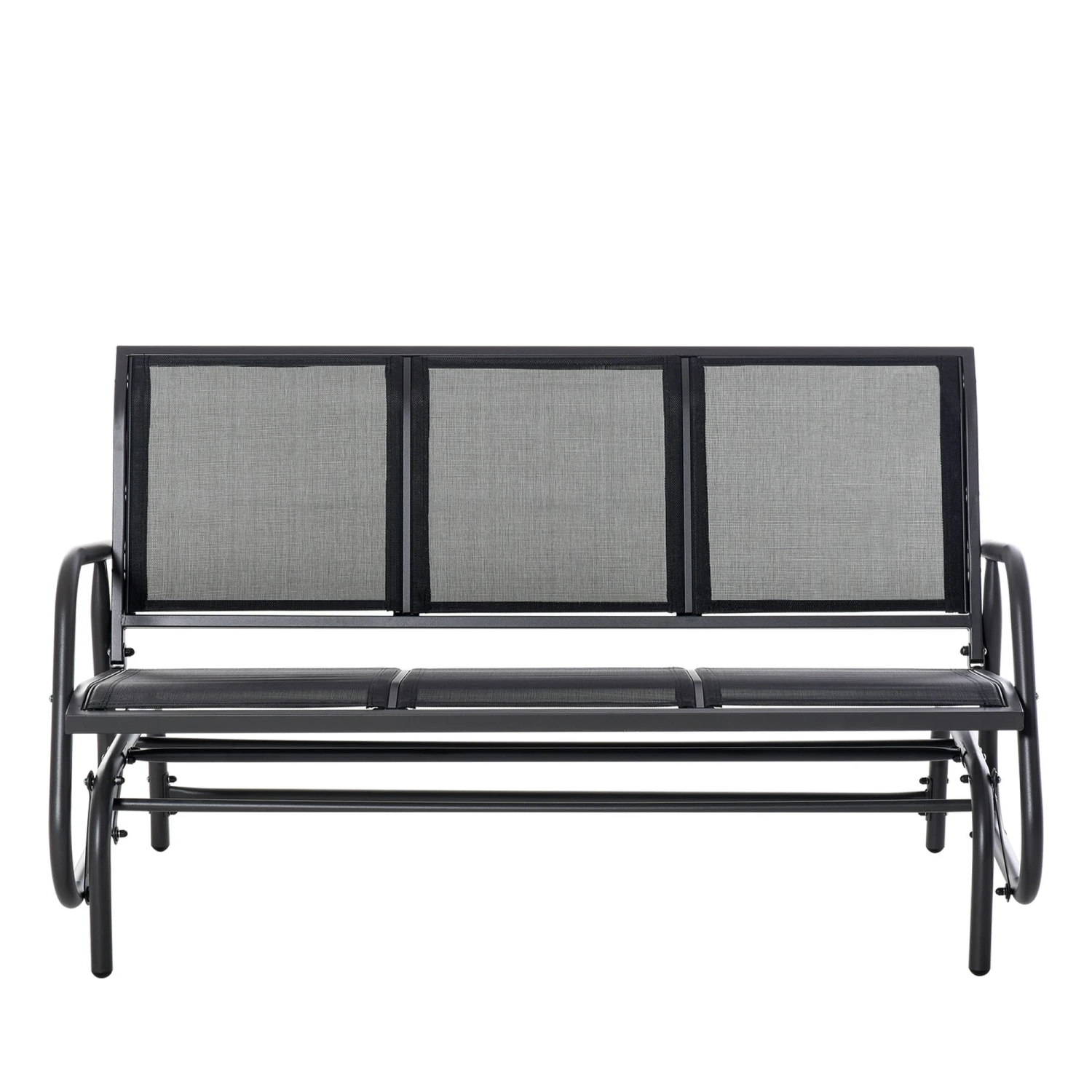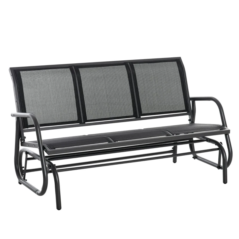 Unwind outdoors the effortlessly smooth way with this gliding bench from Outsunny. Using powder coated metal for a strong and durable frame, it is covered with mesh fabric for a breathable seat and back. Curved back and armrests support your body. The frame is securely attached to the base, letting it rock back and forth smoothly for an enjoyable experience every time.