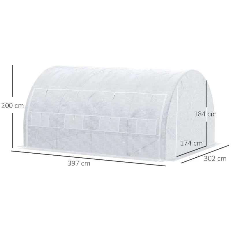 This Outsunny garden polytunnel greenhouse is perfect for the home gardening enthusiast who is looking for a way to stay in the soil all year round! The galvanised steel frame and PE cover will keep your plants and vegetables more secure than on their own. Completely roll-up side covers and 8 built in window ensure good ventilation, while a double zipped door provides easy access. Start your backyard gardening today with this Outsunny greenhouse.