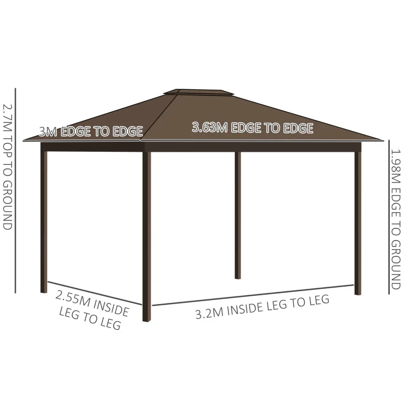Step up your garden party game with this hard top gazebo from Outsunny. This permanent gazebo has a strong powder-coated aluminium frame, paired with the hardtop roof make it a firm impression – which will create a safe and steady shelter for all you want in your outdoor areas. The garden gazebo is fitted with four curtains to enclose when needed – inner mesh curtains help keep annoying insects away. The set is complete with ground pegs and expansion screws to pin and secures to the ground.