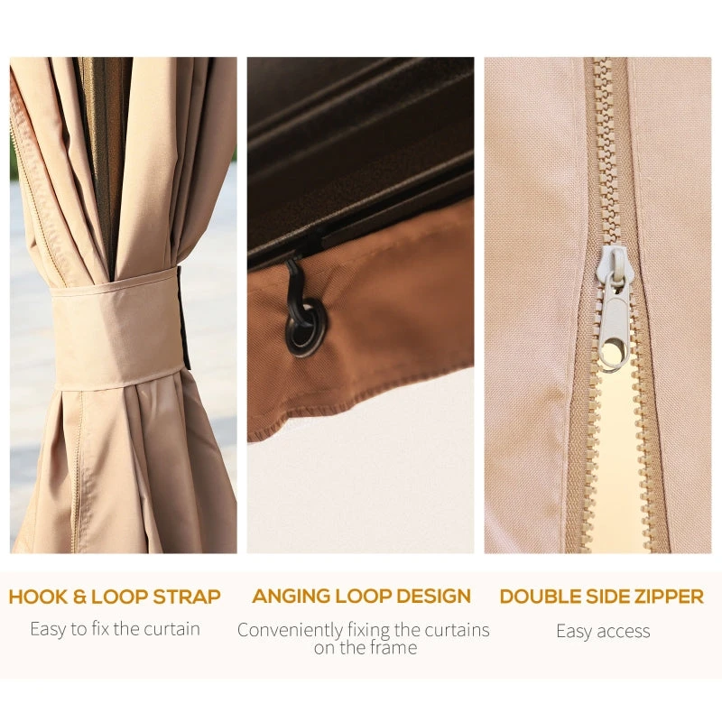 Make the most out of you garden and outdoor areas with this Gazebo from Outsunny. Made from steel, the roof has been built to last for years to come in all weather conditions, with rust-resistant aluminium framing to ensure complete stability from the ground up. Each curtain is weather resistant with mosquito netting included to protect you from any insects and pests, making it suitable for use all-year round. Large and spacious, this gazebo is perfect for friend and family gatherings, barbecues, summer parties and lot more.