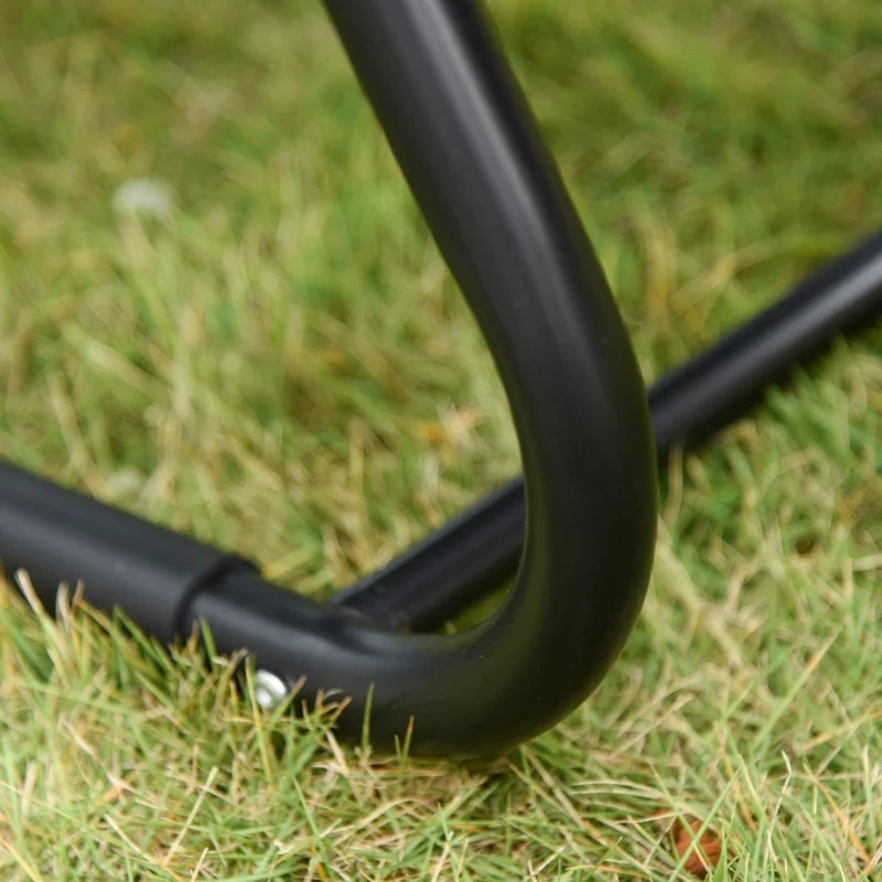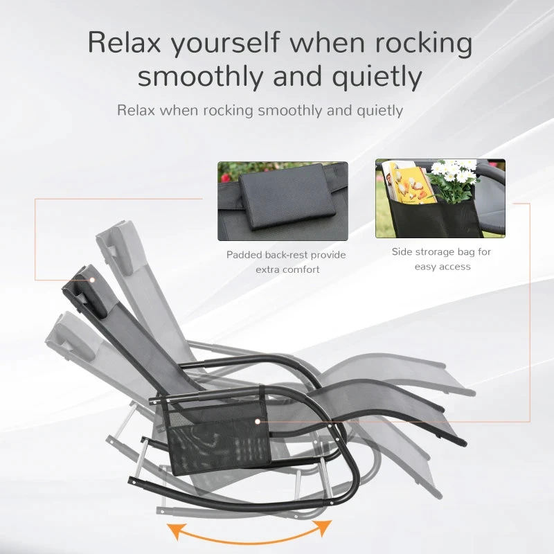 This outdoor rocking chair from Outsunny is a great way to relax outdoors. The curved frame has been made with your body comfort in mind, hugging to the contour of its shape. The seat is wrapped in mesh fabric which holds yours body in place, with a removable top pillow for head and neck comfort. Our patio rocking chair is finished with a removable side pocket, keeping everything you need next to you and rubber pads on the metal frame for protection.