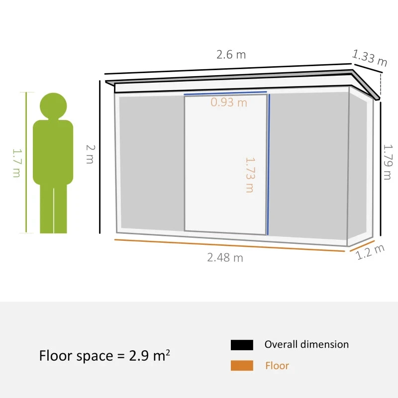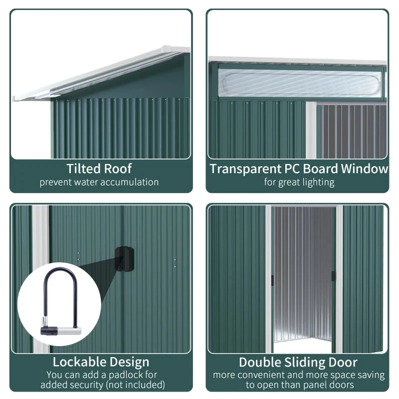 This Outsunny outdoor storage shed is a safe and protective way for keeping tools, equipment and outerwear stored. This corner garden shed is also spacious enough as a bike storage shed for the outdoor adventurers. Made from corrugated steel, the galvanised shed is strong, fitted with a sloped shed to prevent rainwater building up. Two clear front panels allow sunlight to drench through – outdoor sheds easy to see inside. Complete with two lockable sliding doors to enter and leave with ease.