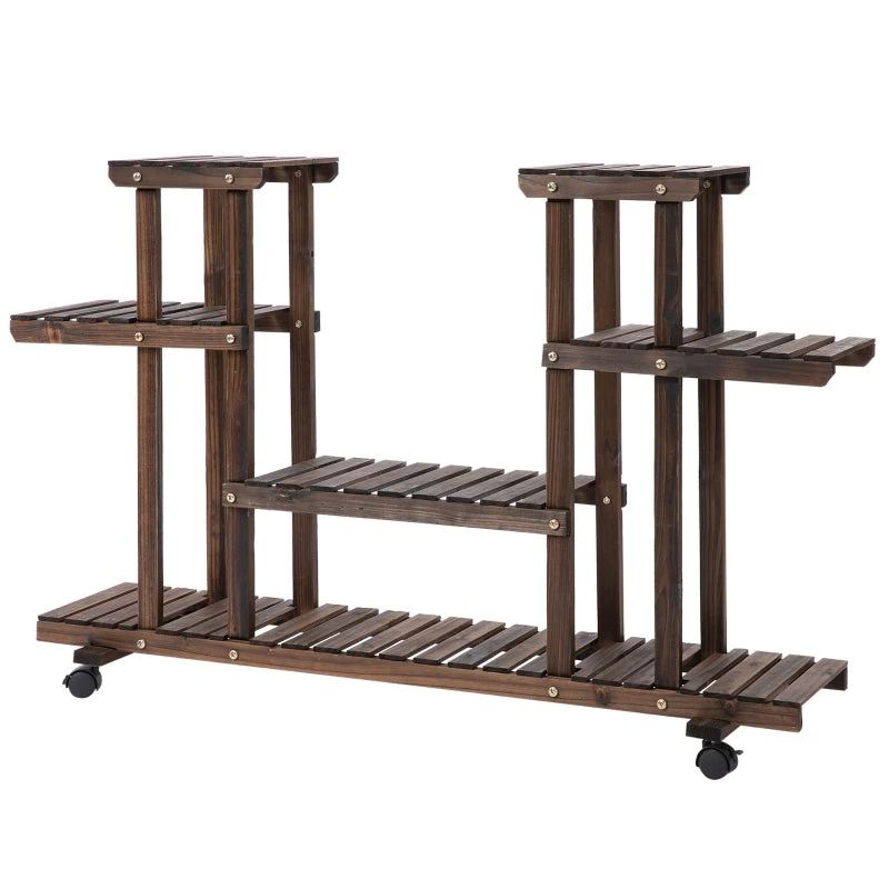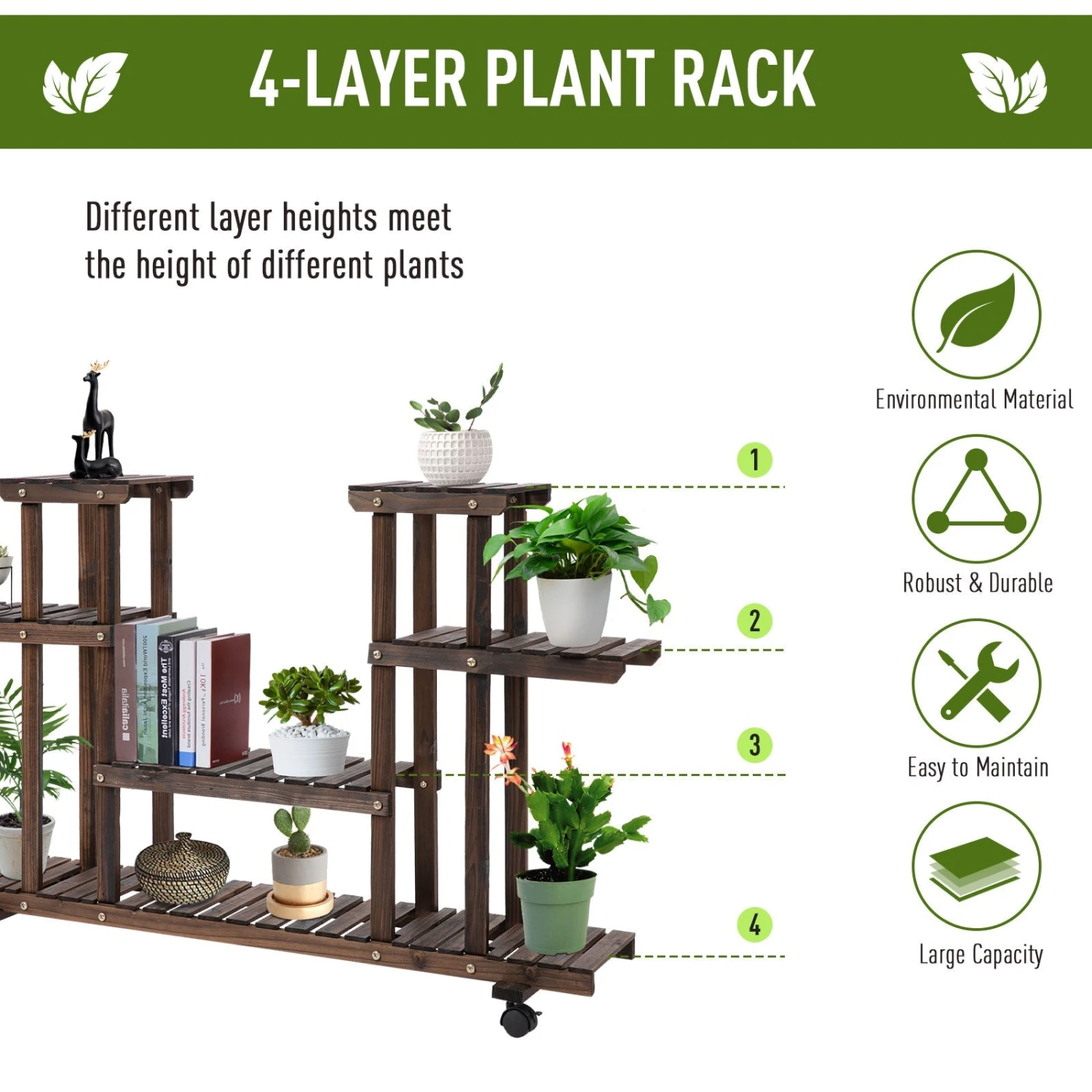 Proudly display your thriving house plant or a fresh floral arrangement on the fir wood plant stand. 4-Tier open shelves provide ample space for storing items, like books, magazines, photo frames, plant pot, etc. With the convenient wheels, you can move it to any space of your home, deck, or patio to bring both style and storage room. The large volume of the structure is designed to take into account your decorative needs.