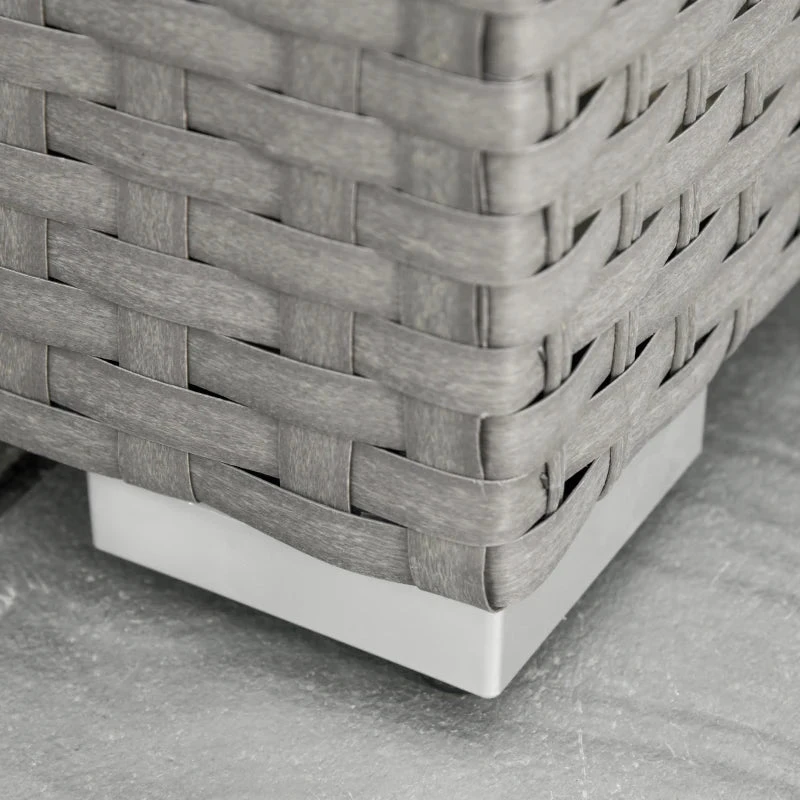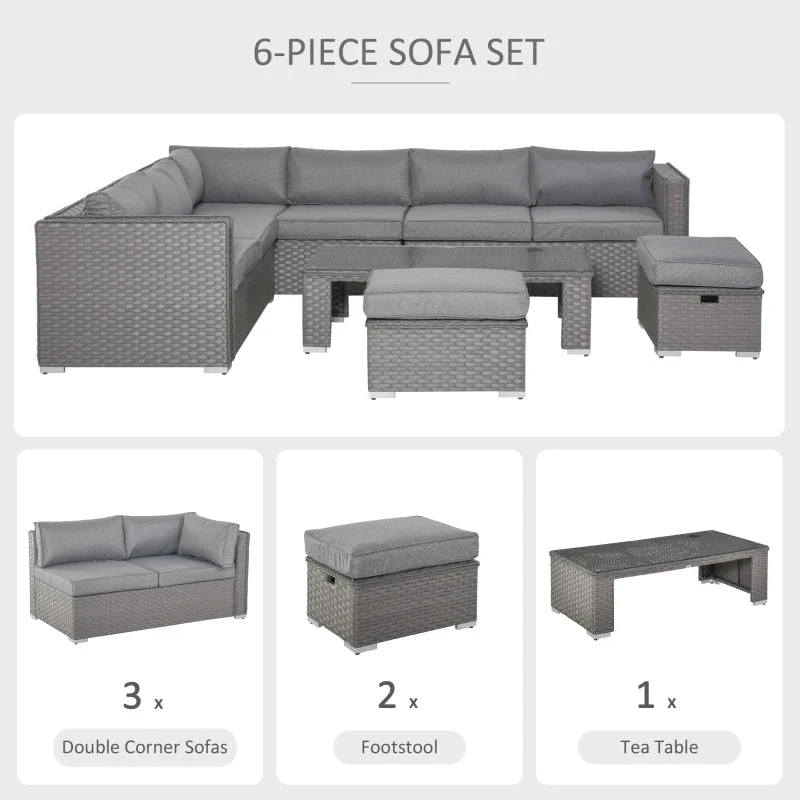 Bring comfort to your outdoor times with this Outsunny garden rattan furniture sets. Formed of three double corner sofas, a long coffee table and two footstools. Aluminium makes the frame of the rattan garden furniture for a strong structure, wrapped in UV and fade resistant PE rattan, so each piece of the conservatory furniture is durable and suitable for outdoor use. Each piece of the garden furniture sets finished with cushion s for comfort.