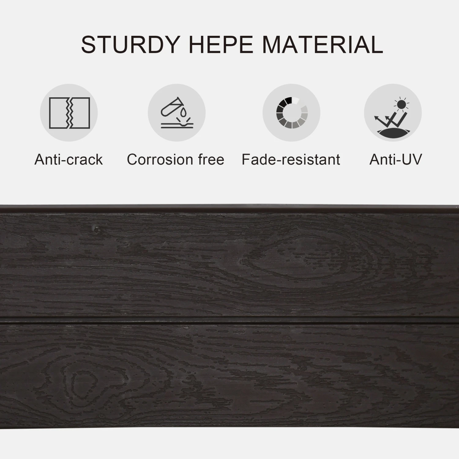 This Outsunny planter box can satisfy your desire to build a wonderful garden in your yard! The practical design of the vegetable planter makes it easy for growing your favorite flowers, fruits, herbs, veggies, or plants in just about any location. Made from high-quality HDPE material, the garden box is strong and durable, which can withstand years of reliable use. The surface imitation wood grain texture is beautiful and durable as well, making this herb garden both good-looking and useful.