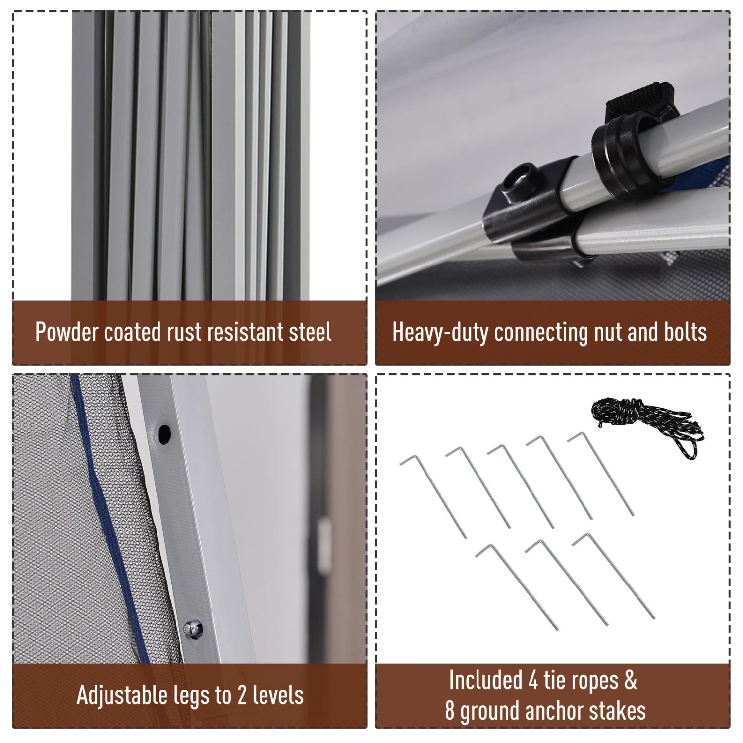 - Powder coated steel frame, ensures a sturdy upright structure all-day long