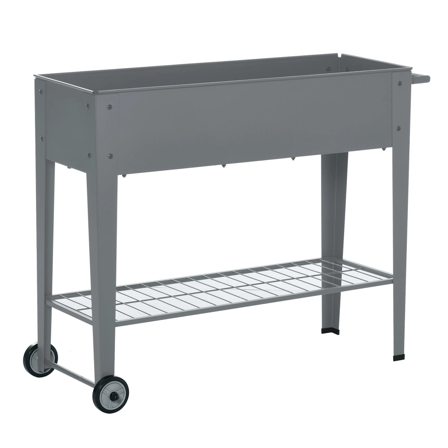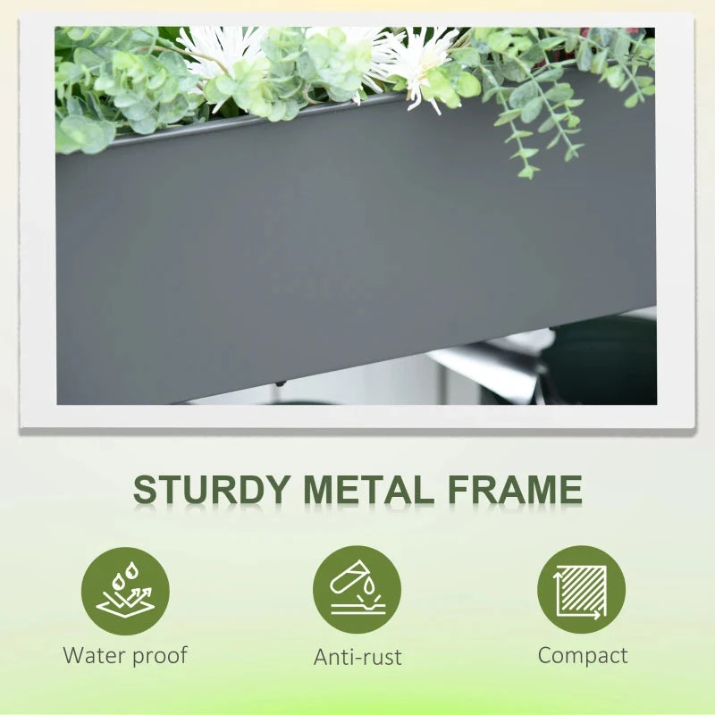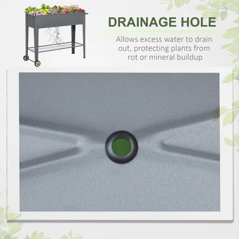 Display and grow plants the different way with this planting unit from Outsunny. The boxy design in dark grey creates a muted background which clashes against colours, allowing your flowers, greenery and more to make a stronger impact. It’s made from metal to ensure a solid and sturdy structure, with four legs to keep it balanced. It features two wheels and a side handle to move around easily. The two-tier design is formed of the open top box for all your plants and the bottom shelf for handy storage. A great way to bring extra life into your garden and outdoor spaces.