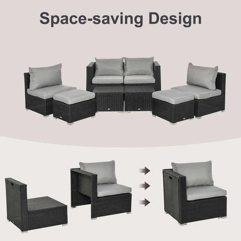 Take comfort to your garden and beyond with this eight-piece outdoor furniture from Outsunny. Using galvanised steel for the frame to ensure a strong and tough structure, each of the two single chairs, two corner chairs, two stools and two coffee tables are covered with PE wicker for long-tern use outdoors, with pieces but the table featuring heavily padded cushions for you to lounge comfortably. A fantastic blend of style, comfort and craftsmanship.