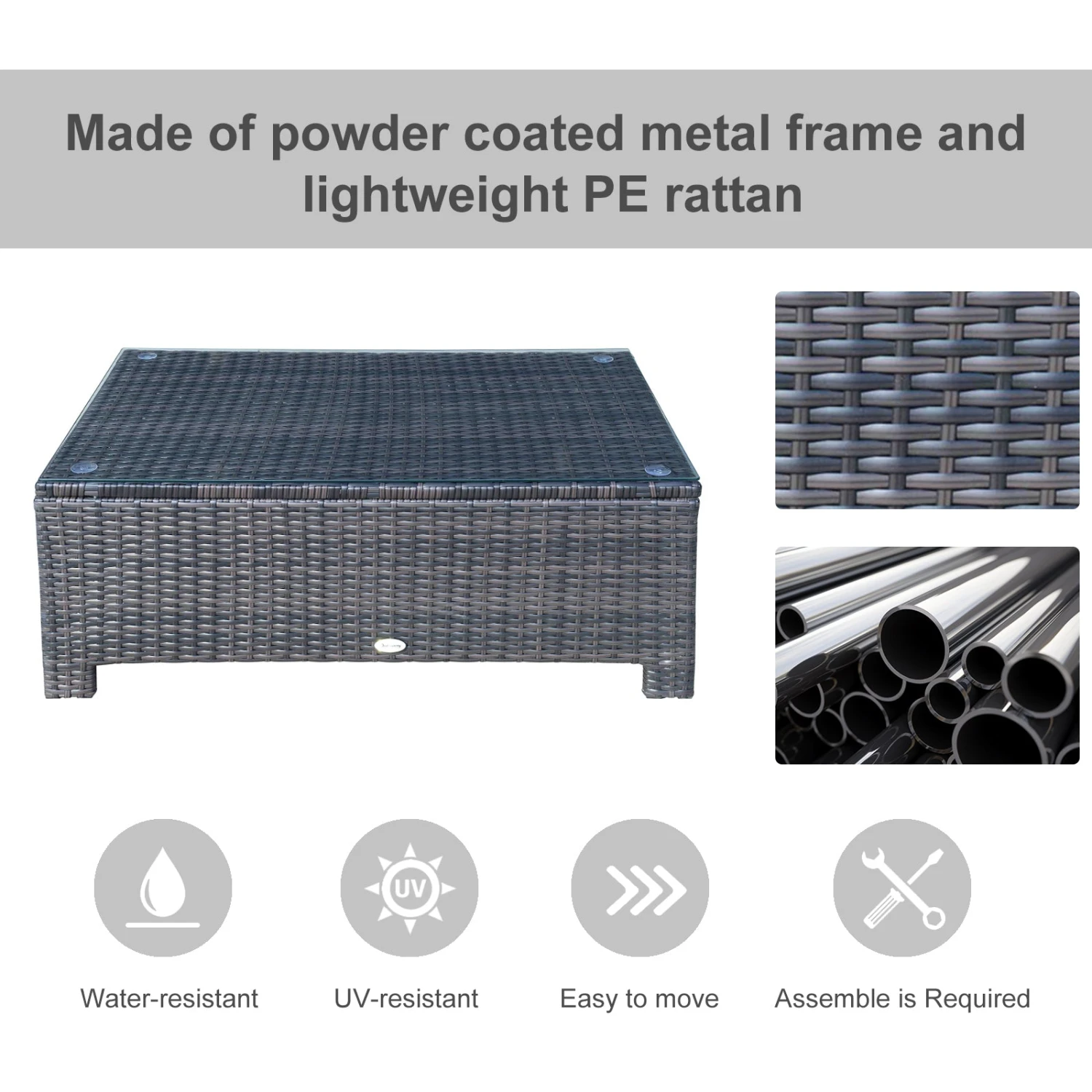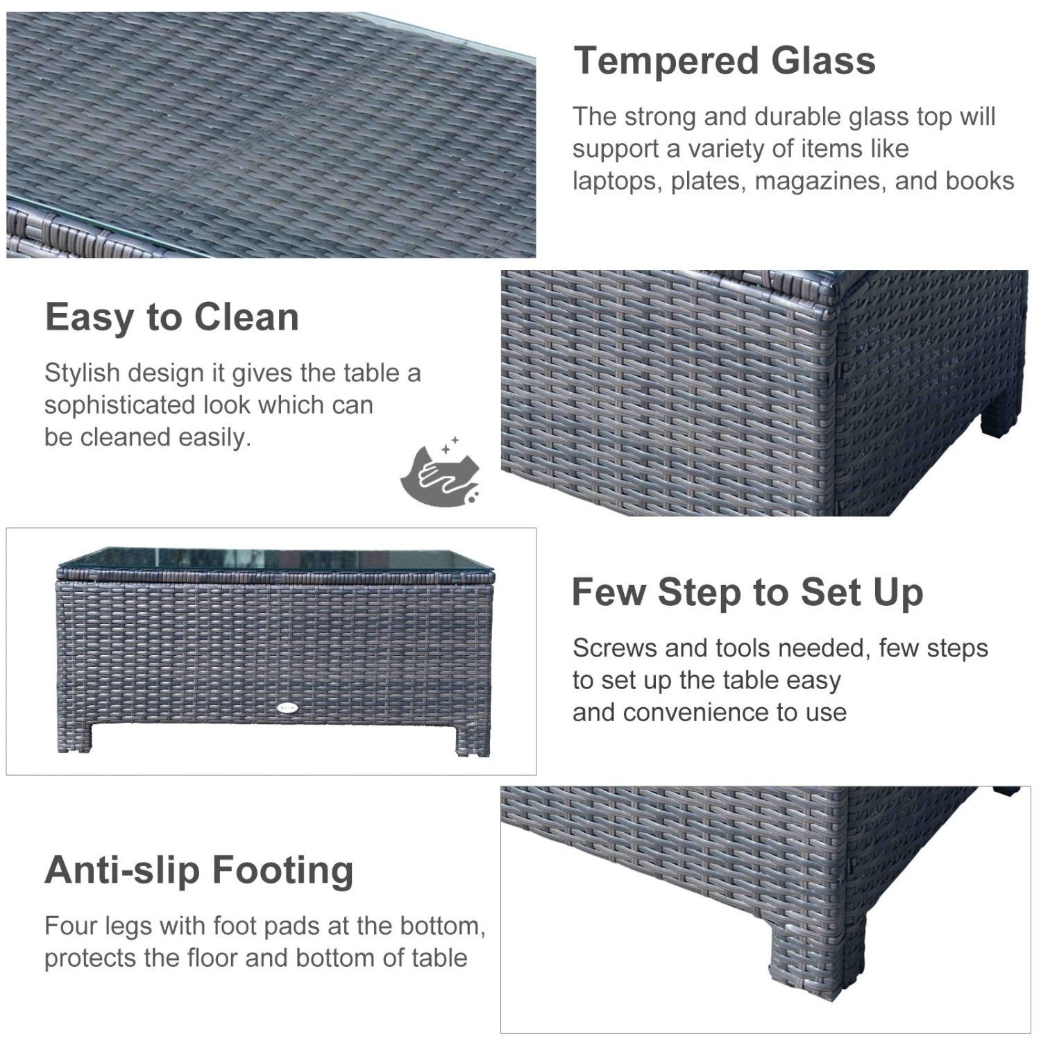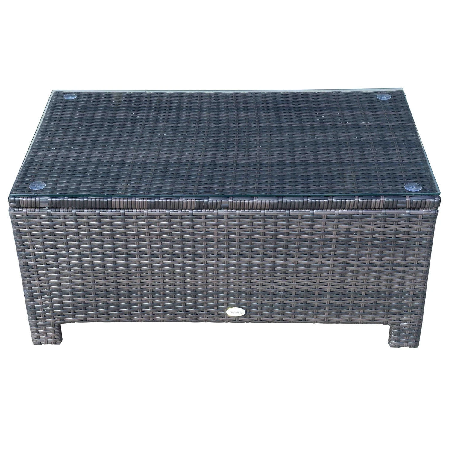Features: – Large size is perfect for keeping mugs, magazines, plates, etc. on and close when needed. – Metal frame to ensure strength and provides a solid foundation whilst you sit. – PE rattan in a stylish mixed-brown is resistant to UV fading and mild weather damage. – Thick 5mm tempered glass tabletop, provides a smooth surface and sleek finish. – Four legs for stability, with anti-slip foot pads. – Maximum load 70kg, assembly required