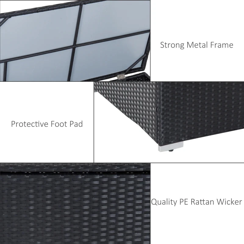 The Outsunny garden rattan furniture sets are a great addition to your outdoor living spaces. The grey rattan sofa set is formed of two corner seats, two single seats, side table and a coffee table. All pieces of the conservatory furniture are made with a metal frame, wrapped with plastic rattan – strong and fully supportive. Both the side table and coffee table of the outdoor furniture feature storage – simply lift the lids to reveal. Completed with seat and back cushions for comfort.