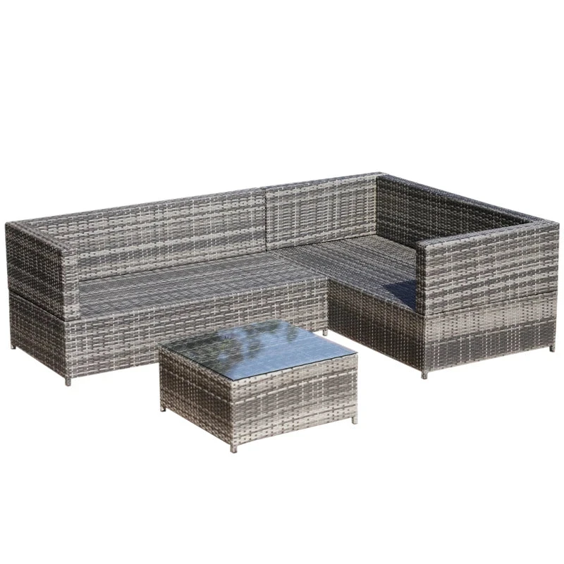 This outdoor corner sofa from Outsunny. The small garden furniture is made of weather-proof rattan with a metal frame for extra support and stability, giving you more time to relax and enjoy the sun. Featuring two loveseats and a square coffee table, there’s plenty of room for yourself and friends, with plush padded cushions to provide all day comfort and support. The conservatory furniture set is finished with a tempered glass top on the coffee table for a stylish garden set.