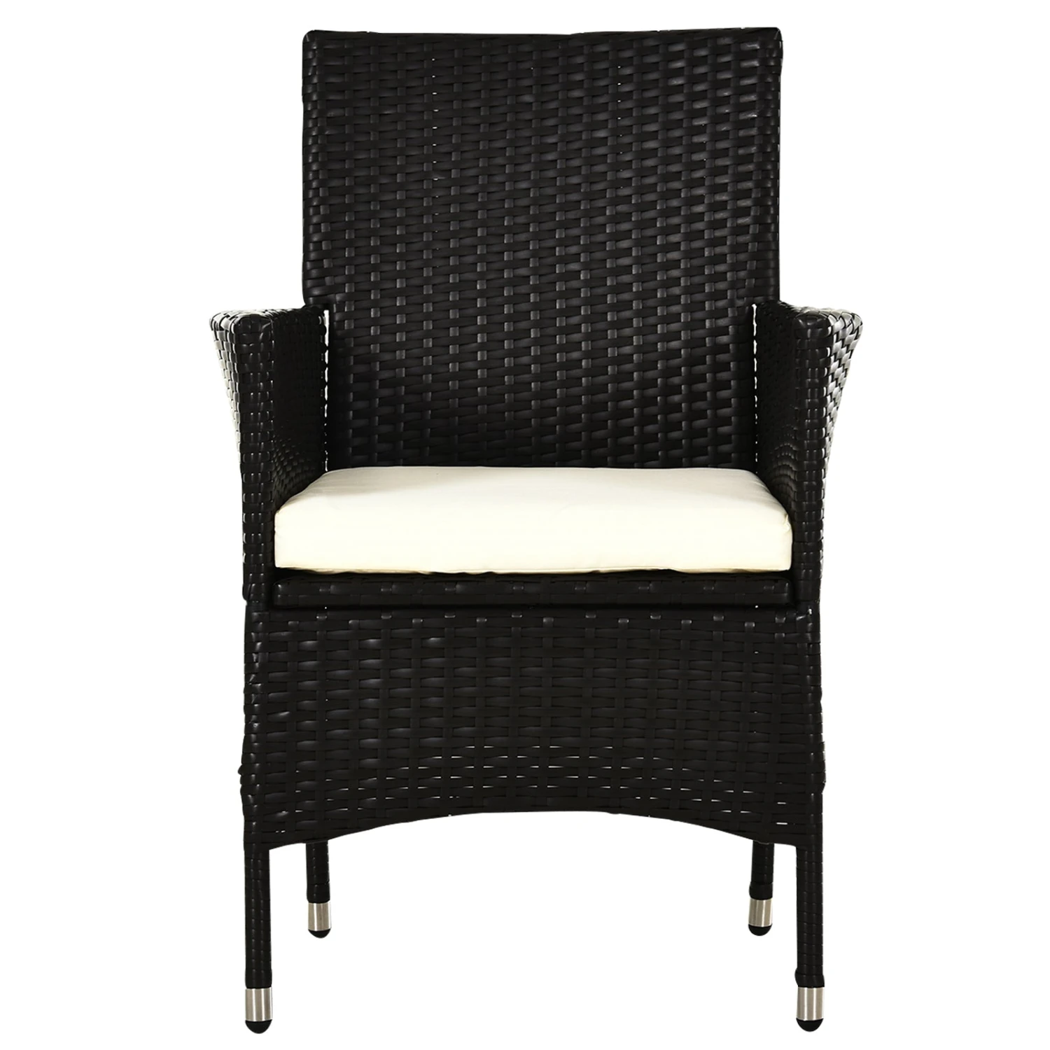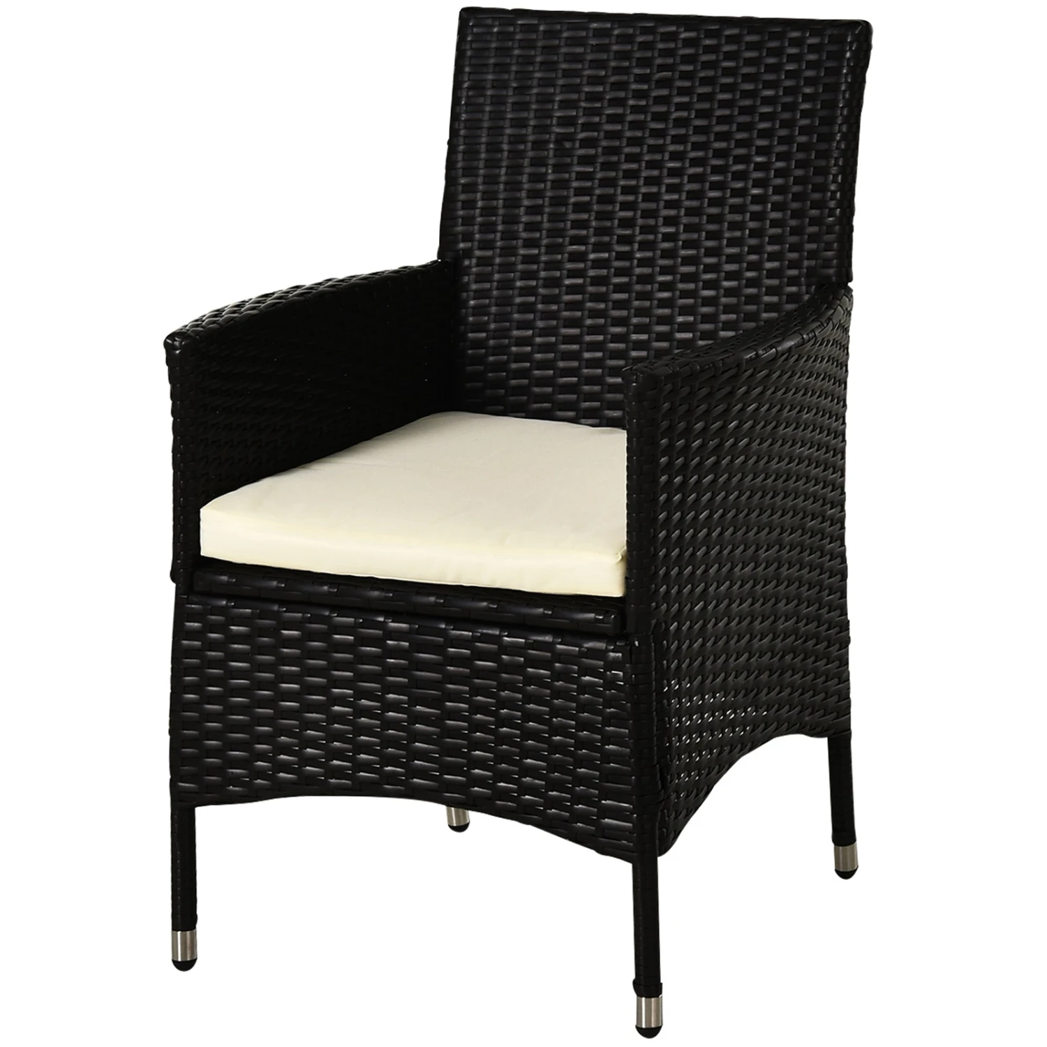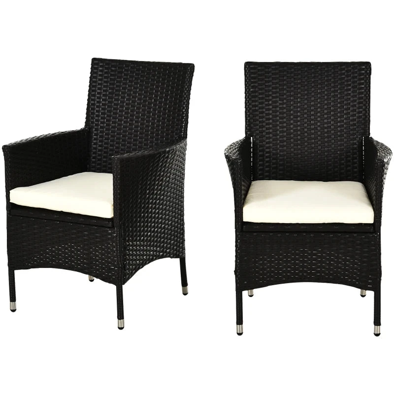 These two Outsunny rattan chairs are a great complement to your outdoors, whether standing alone or matched with other furniture. The chairs are made with a galvanized metal frame for a tough and fully supportive structure, covered with plastic rattan for durability and style. Tall backs and armrests, paired with the cushion mean you can sit in total comfort. Start the season the right way – start it with this stylish two-part set.