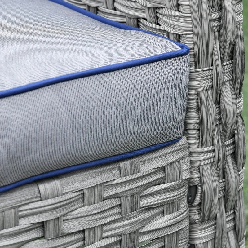 - Tough powder coated metal base frame, wrapped in durable and UV-resistant rattan