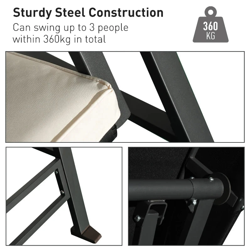 - This easy to assemble three seater chair comes complete with an integral weather proof canopy and is manufactured from strong and comfortable yet easily maintained textoline.