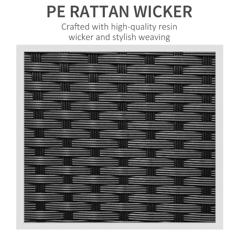 This three-seater outdoor sofa from Outsunny is just the piece for you. Using a combination of a power coated and galvanised frame for the core, with plastic wicker on the outside, this piece has been made to provides years of memories and enjoying the sun outdoors, with extra thick cushions on the seats and back which are so comfortable, once you sit down, you’ll find it hard to get up. Matches with our two-seater sofa (860-031GY) and single armchair (841-008V70) for a complete look).