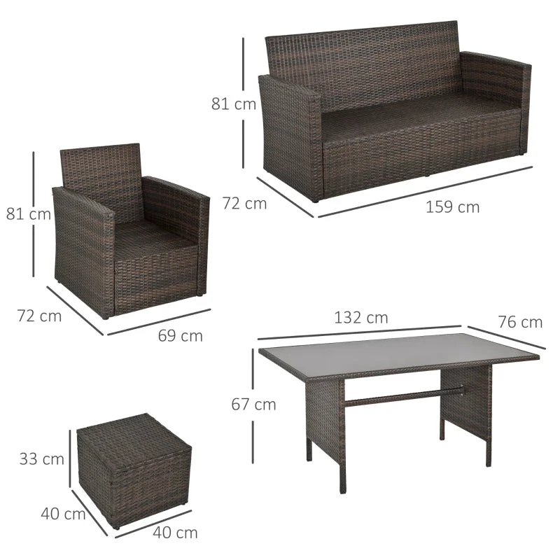 Bring your closest together outdoors this summer with this 6 seater rattan garden furniture from Outsunny. The outdoor garden sofa holds up to seven people. The table provides spacious dining space. The frames of the garden sofa are made from tough powder coated metal for a solid base, wrapped in weather and fade resistant PE wicker for protection. The conservatory furniture is finished with comfortable cushions which you’ll find hard to get out of.