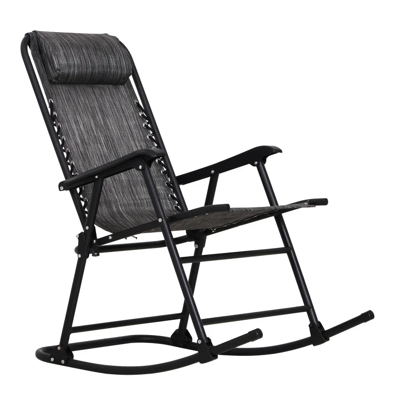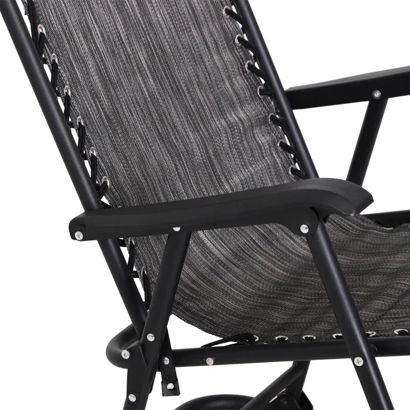 - Outdoor lounger with a rocker base for hours of weightless relaxation