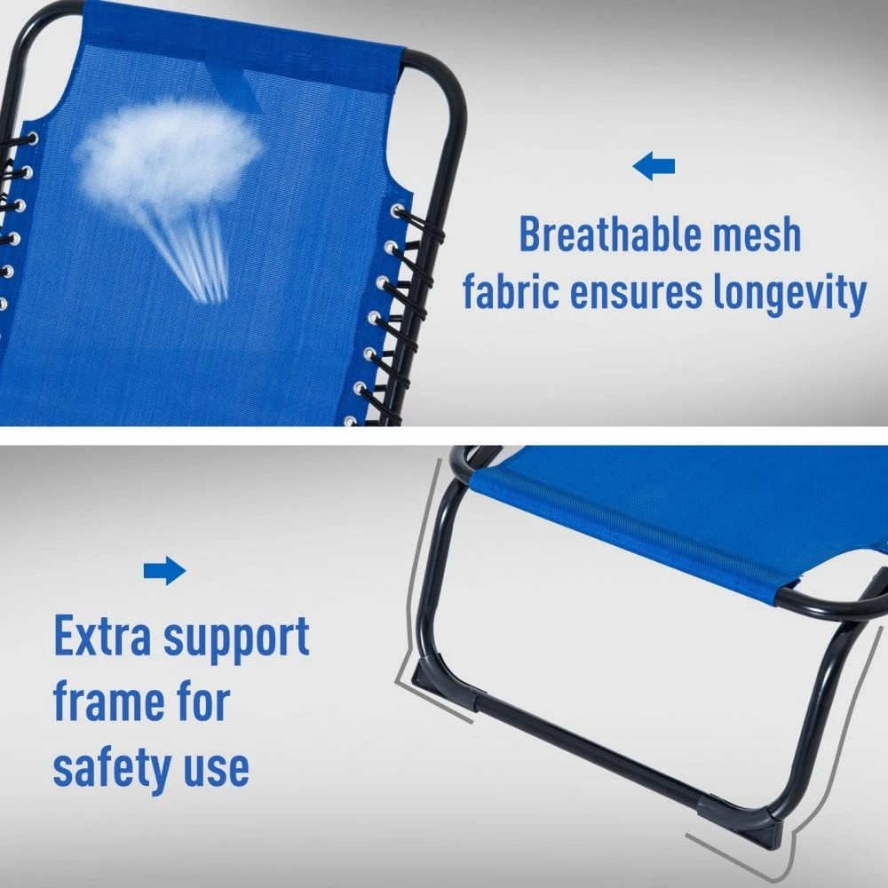 Outsunny 3-positions folding lounger is an ideal choice for you when at the beach, on the patio, near the swimming pool or at the camping ground. You can sit up, recline or lay down with 3 different reclining positions. A comfortable seat with a sturdy frame and its ability to fold up into a small one is easy to transport, you can toss this in your trunk and have a comfy place to rest anywhere.