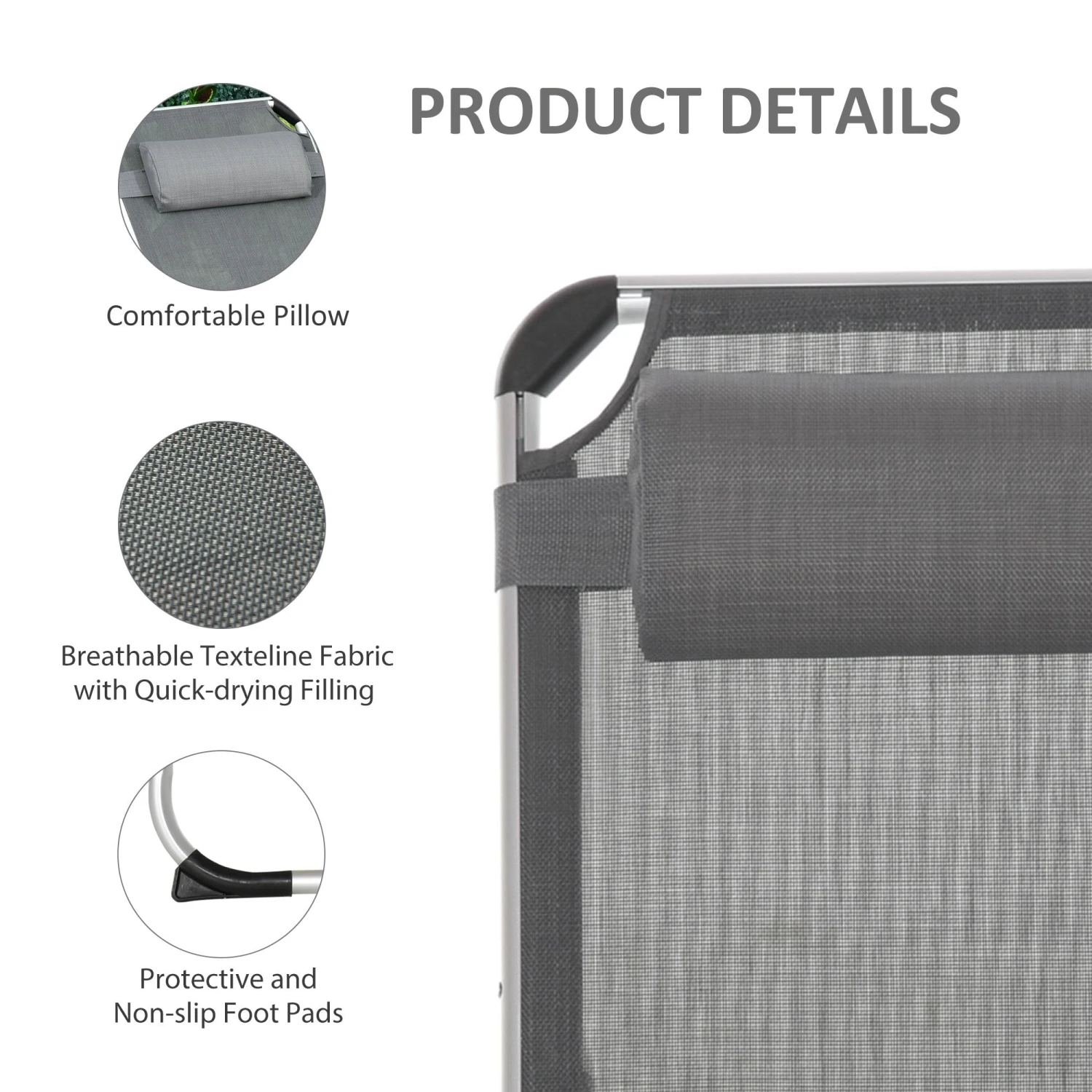 - ALUMINIUM FRAME: A strong and durable structure, supporting your body when relaxing. Foot pads on each corner, keeps it balanced.