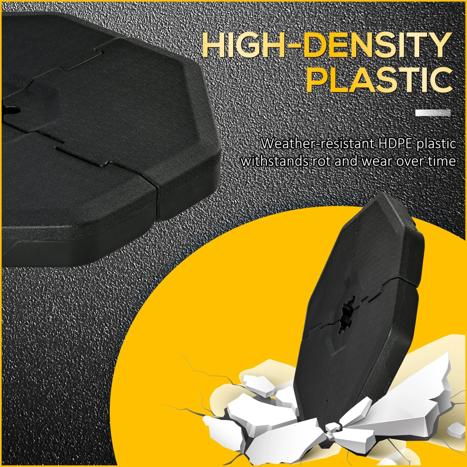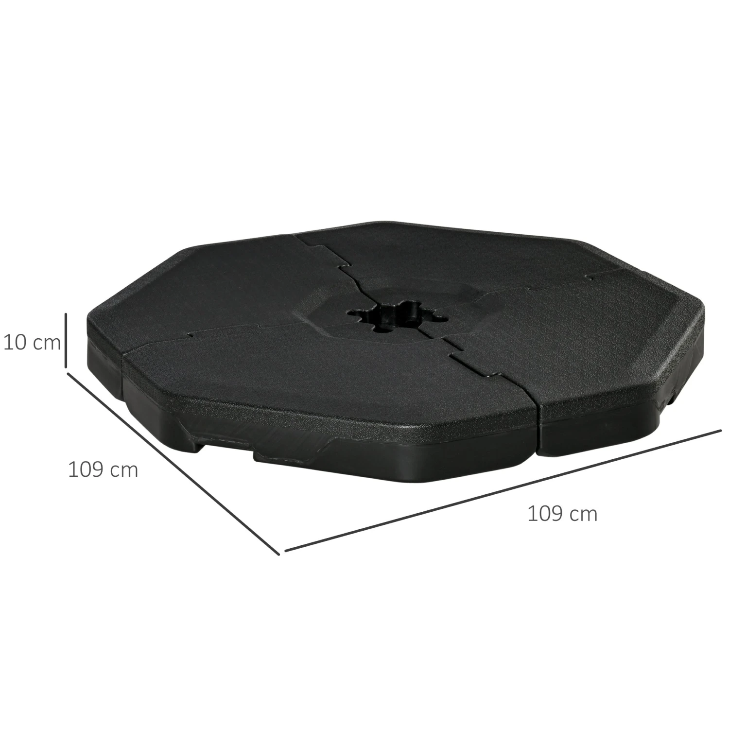 Exclusively for our Outsunny Cantilever banana and roma parasols, these parasol base weights will firmly hold them in place this summer. All pieces are fillable with water and sand – creating 104kg water 125kg sand weight – or a combined total of 140kg if you required something heavier. Made from strong HDPE plastic, each patio umbrella base comes with a port hole to fill up and empty easily, finished with a handle on each to carry with ease.