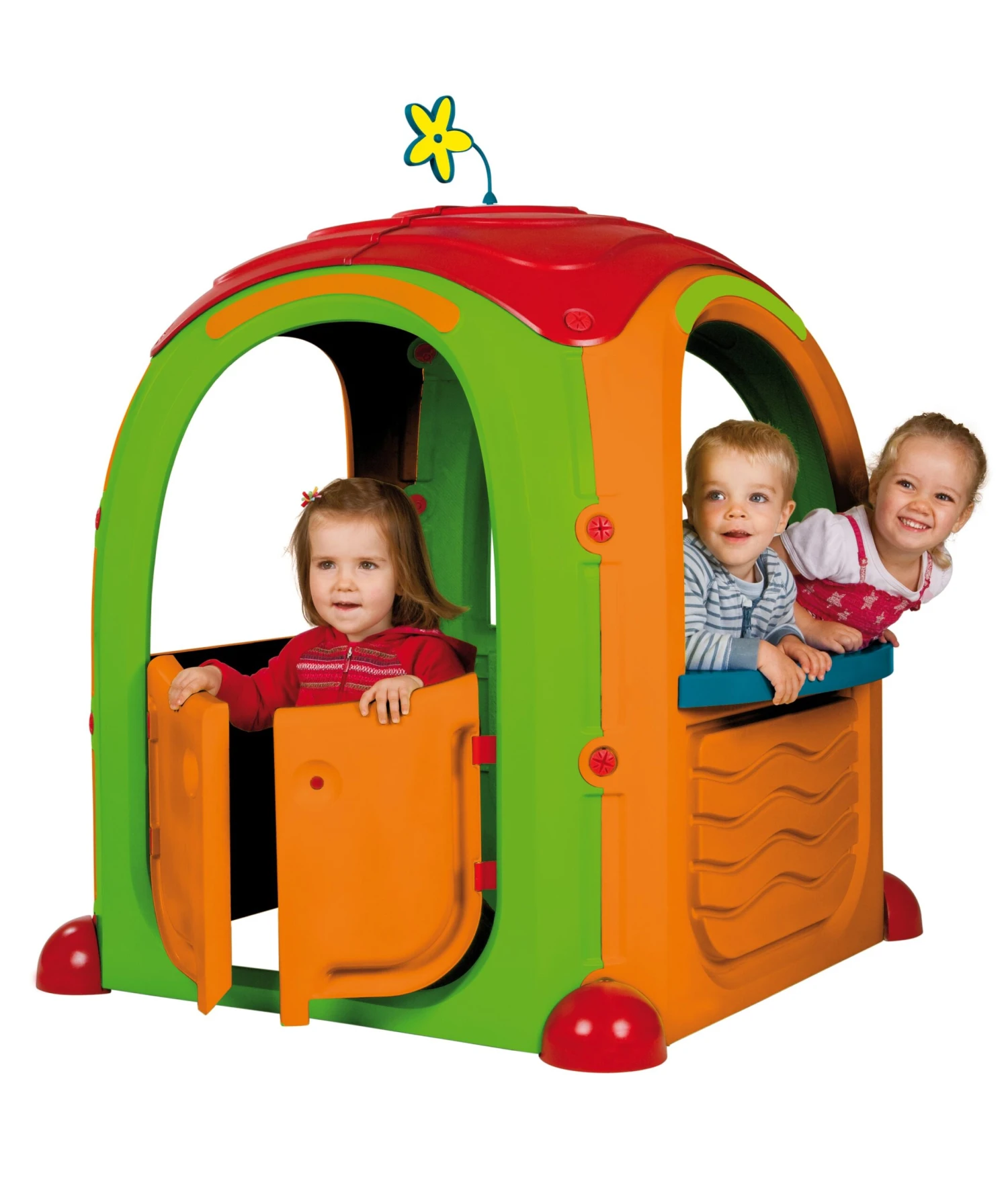 This easy to assemble and easy to clean Cocoon Playhouse is brightly coloured and suitable for indoors or outside. It has a large entrance with two half doors and has three large windows to the sides and rear and comes with a window tray. It comes with 3 different stickers (a supermarket checkout, a kitchen cooker and a workshop workbench), giving extra play value and is easy to clean. Dimensions 94 x 94 x 125 cm. Suits ages 10 months +.