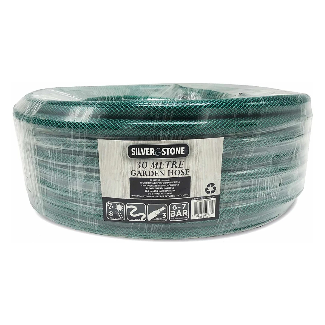 Durable 30m Silver & Stone garden hose to stretch across your garden.