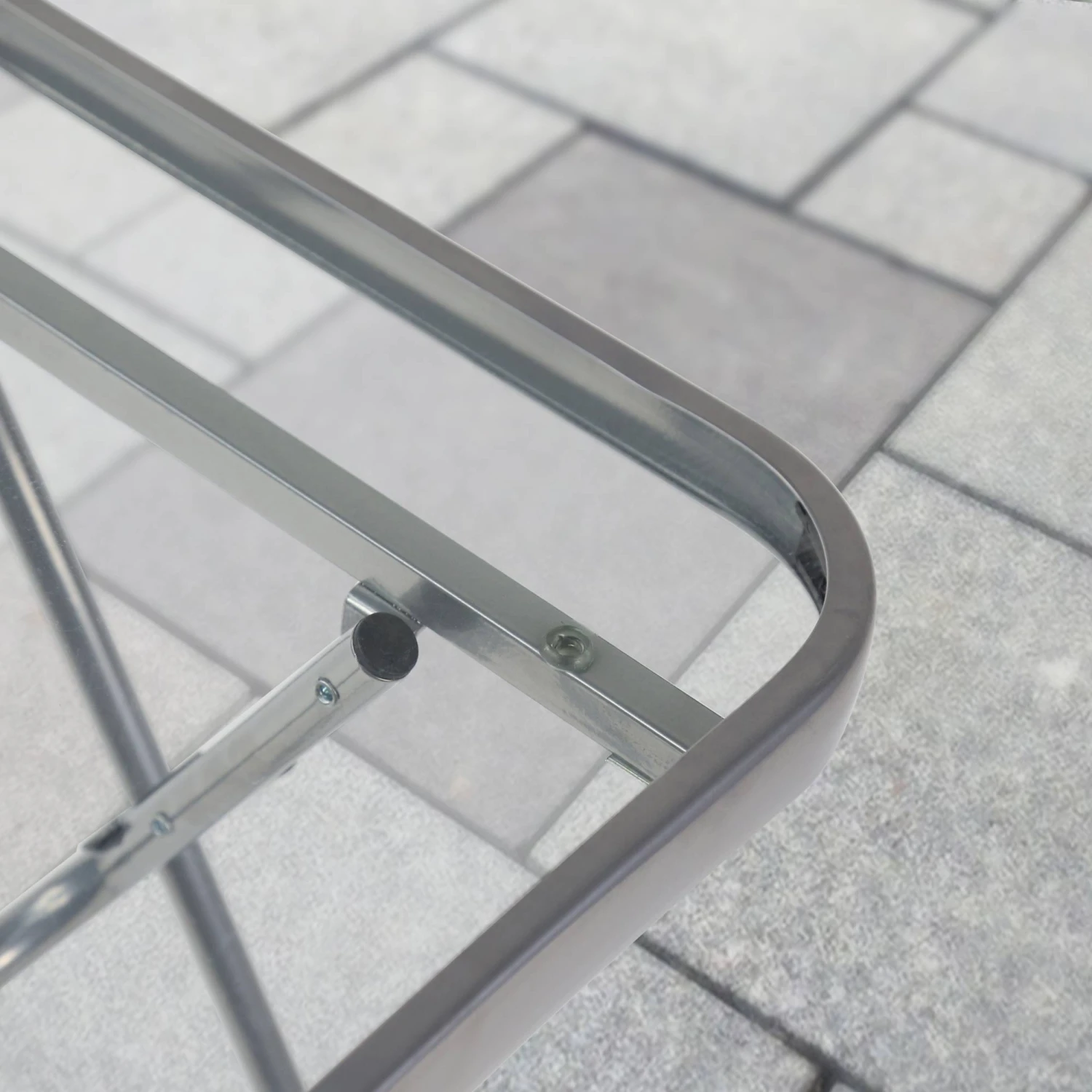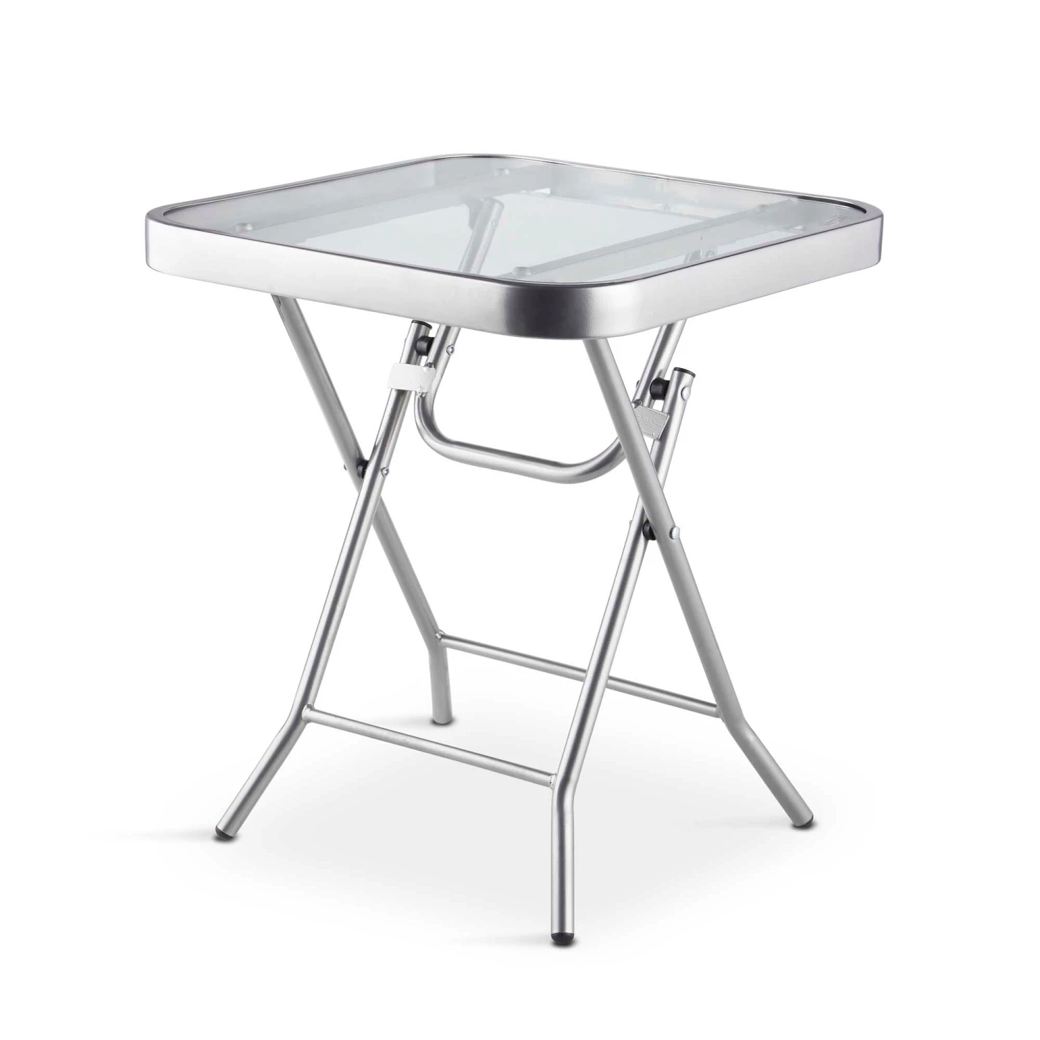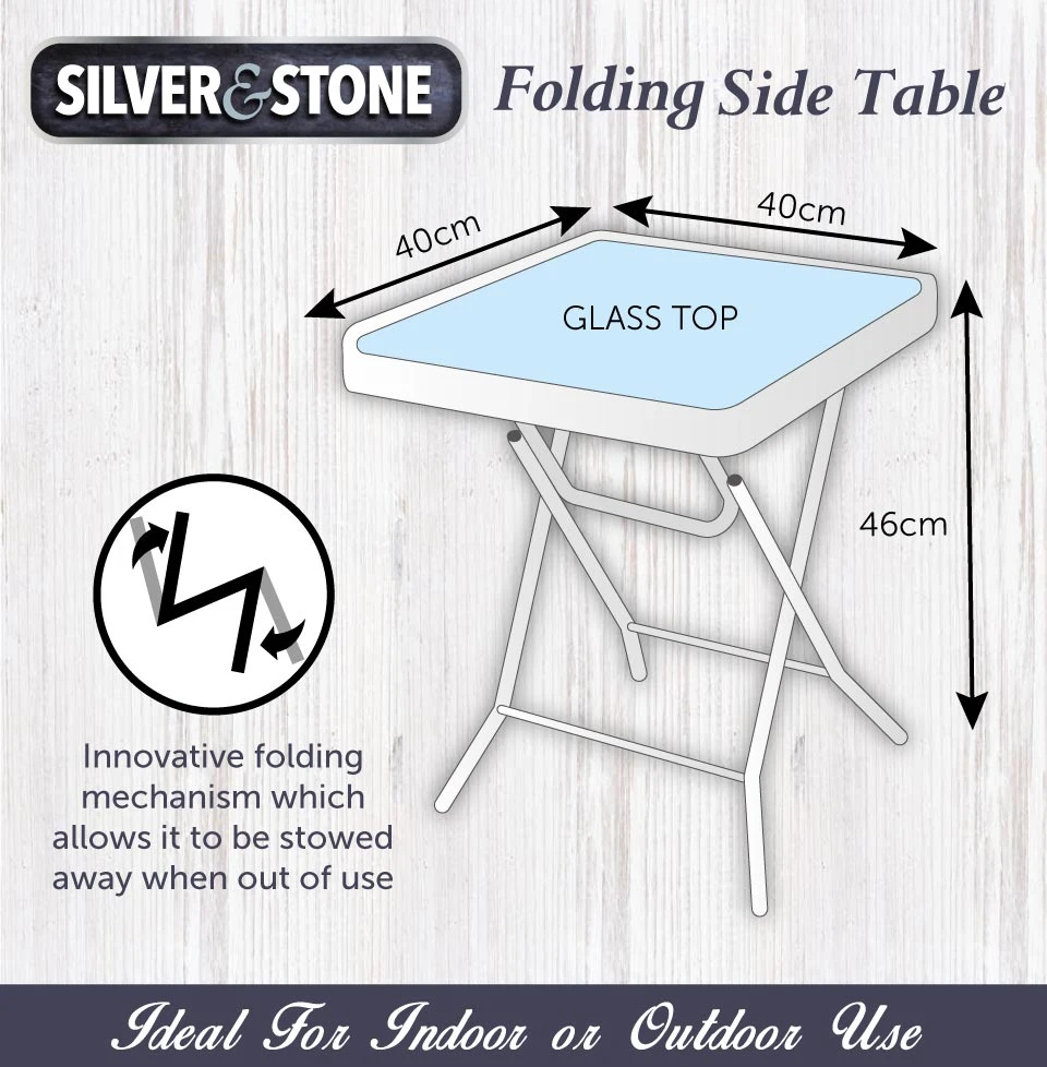 This Folding Side Patio Table has a contemporary design and is easy to move around so it can be placed in your garden on a hot day or taken away on a camping trip/caravan holiday. This folding garden table has a beautiful glass finish and would offer a stylish and sophisticated setting for your drinks at a garden party, family BBQ and special outdoor celebrations. The colour of the folding patio table would also match well with any existing garden furniture you may have. Ideal for the garden or patio and excellent value for money.
